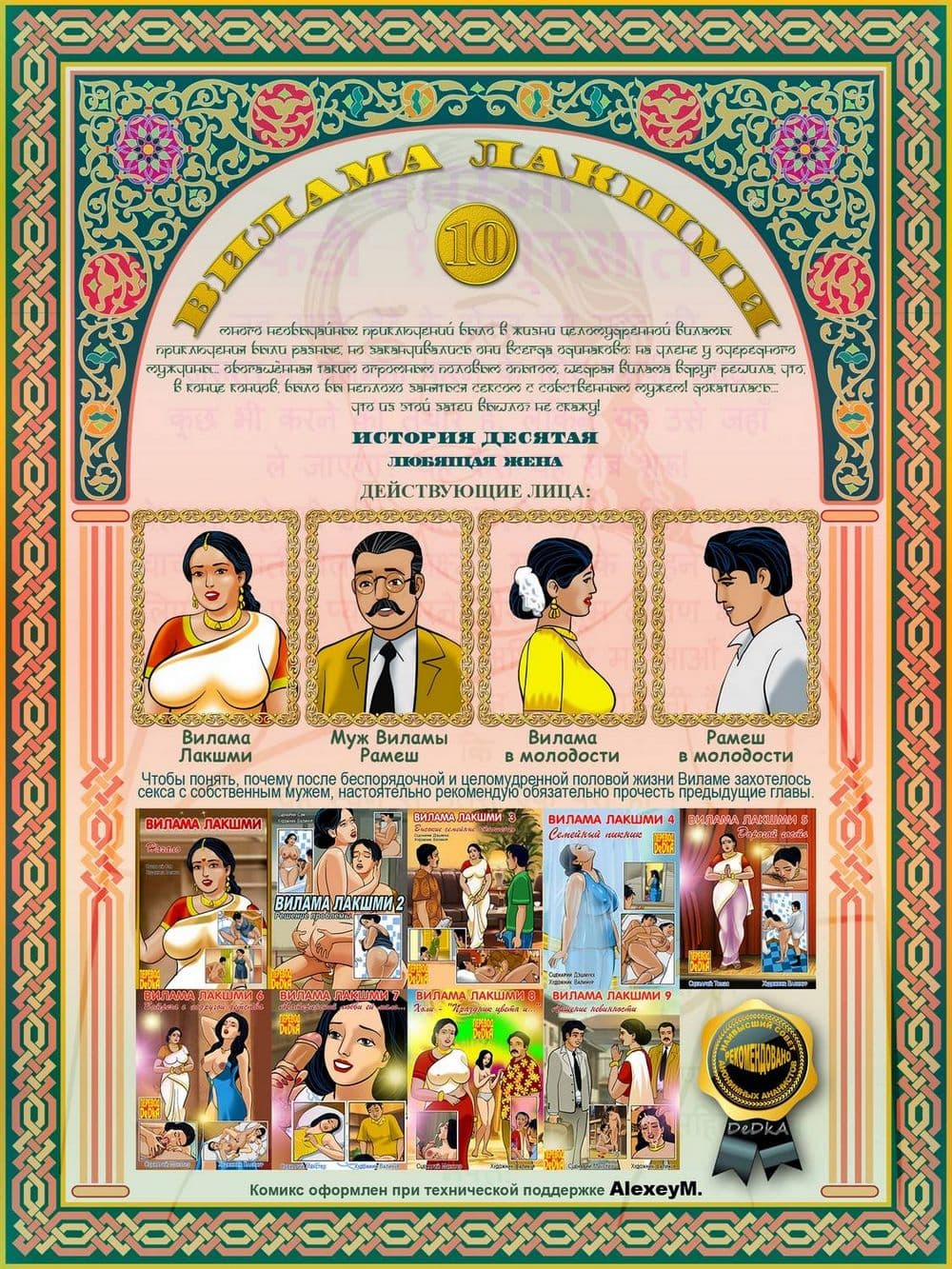 Индийский порнокомикс о взрослой и большегрудой женщине Виламе, которая постоянно ублажает похоть настойчивых мужчин, делая это бесплатно.