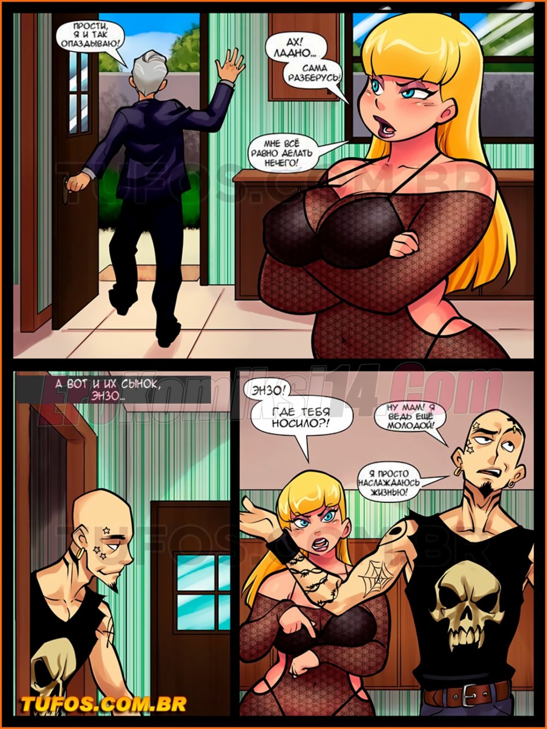 Порно комикс Сладкие домохозяйки. Часть 4. Знакомство с Лауной Развратная зрелая блондинка захотела заняться домашними делами пока мужа не было дома. Она вышла