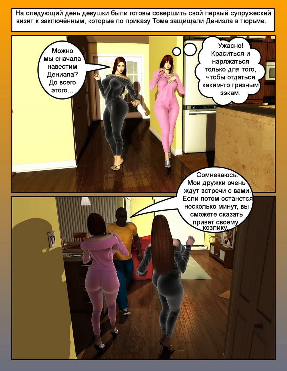 Возбуждающий порно комикс 3d на русском о принуждении белых телочек к жесткой ебле с большими черными хуями, которые залили их щели и тела морем спермы.
