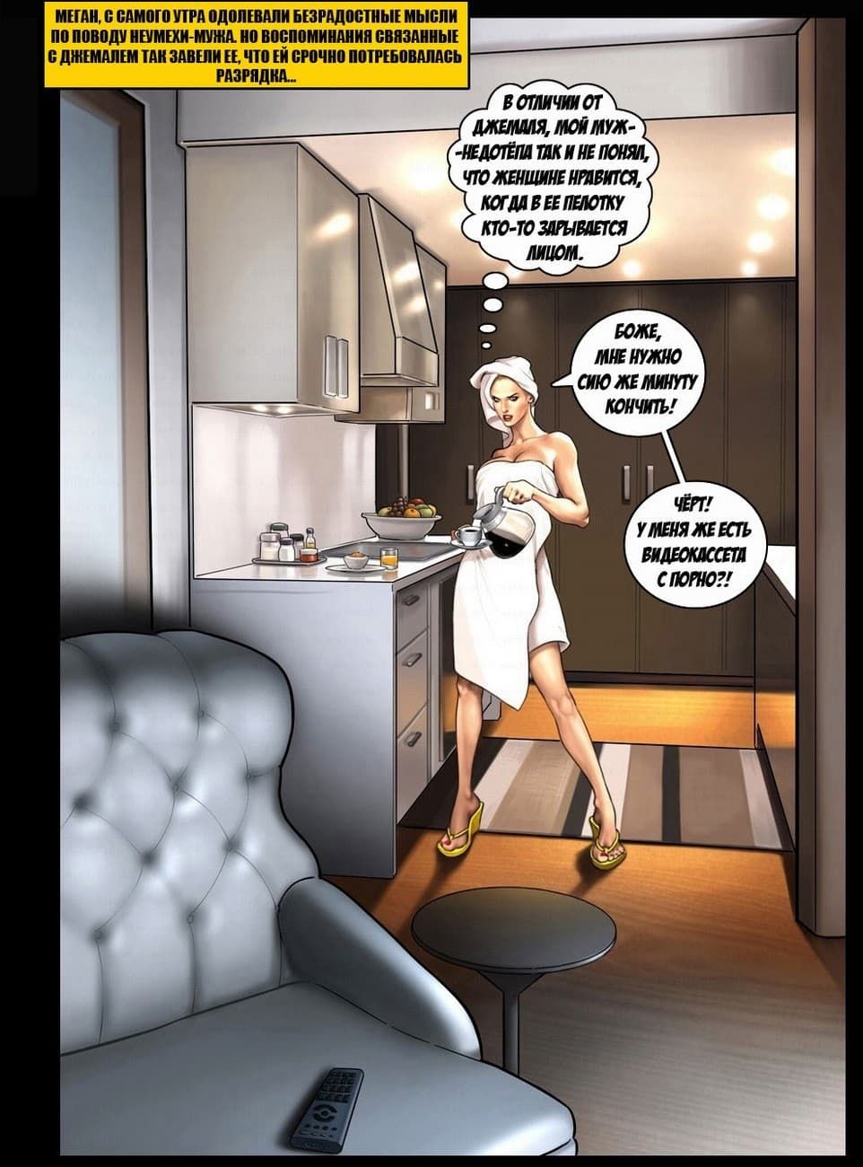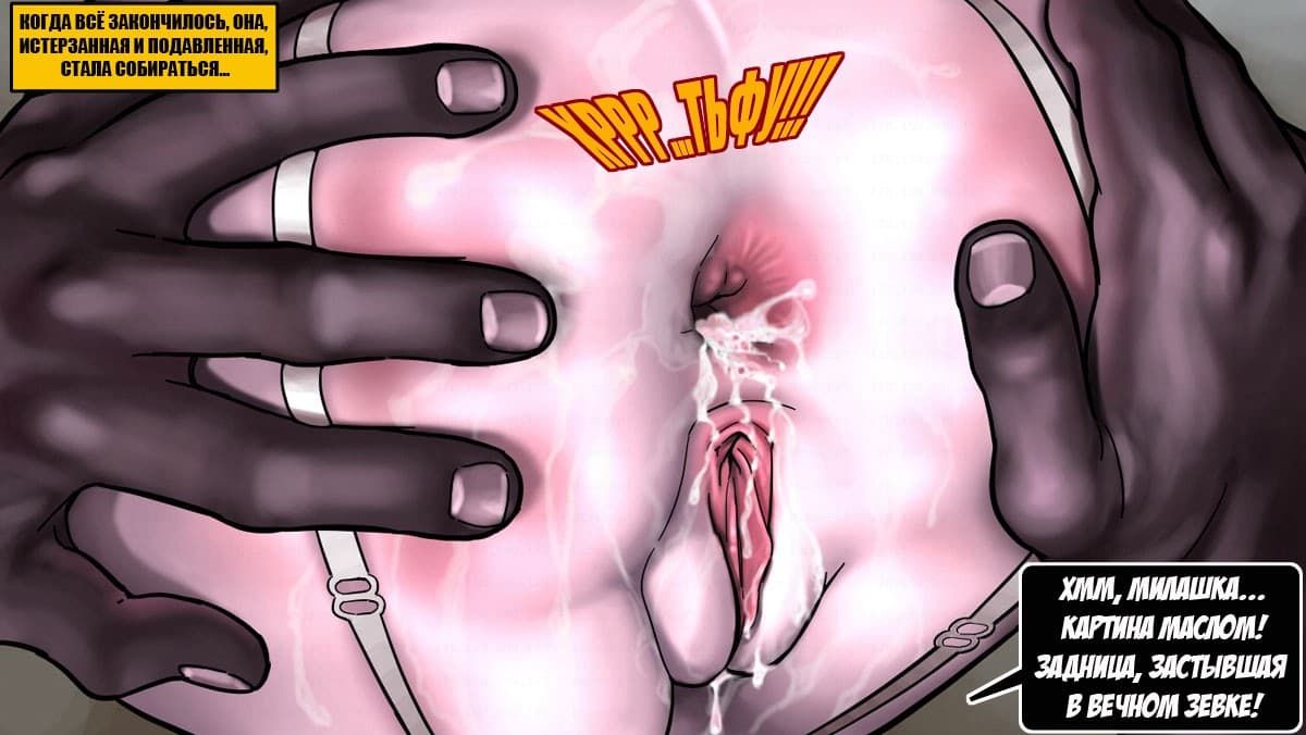 Порно комикс с интрегующим сюжетом о том, как происходила измена белой телки с негром, у которого в штанах был монстр, раздирающий влажные и узкие дырки.