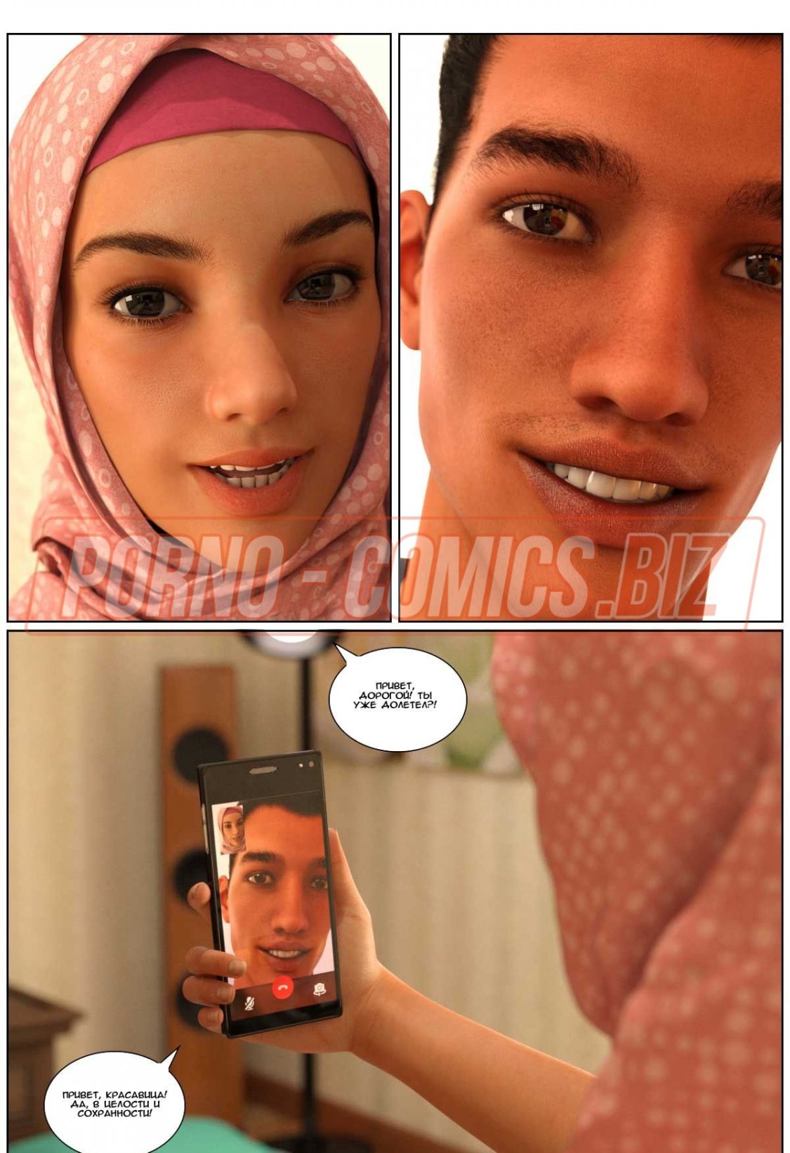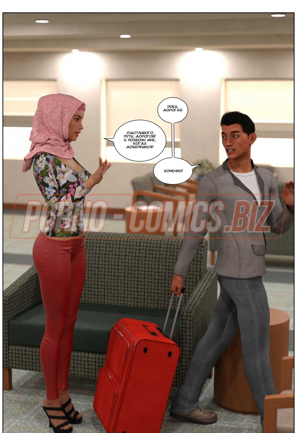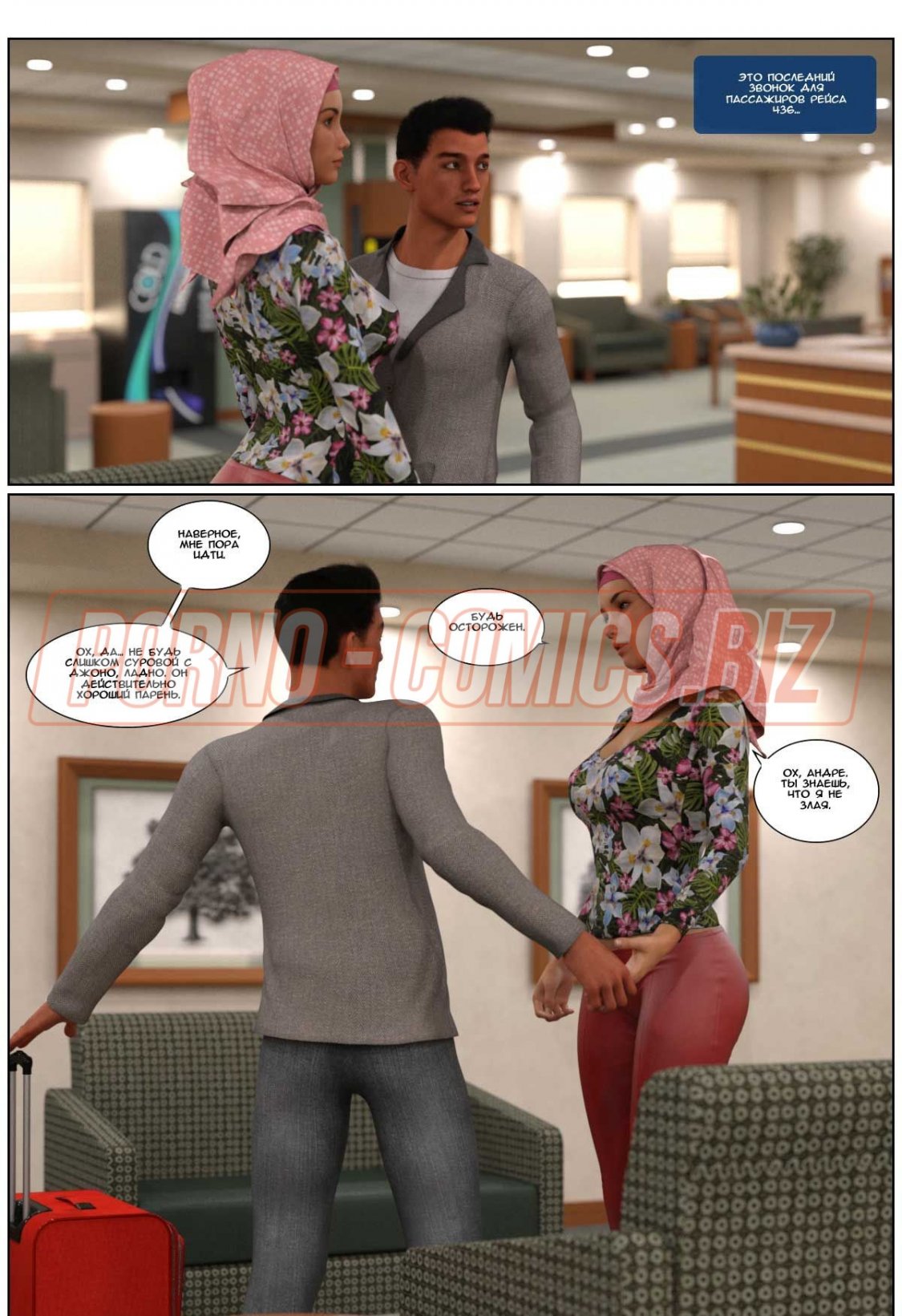 Арабка посадила мужа на самолет а сама села на член любовника - комикс «Любовная история. Часть 3»