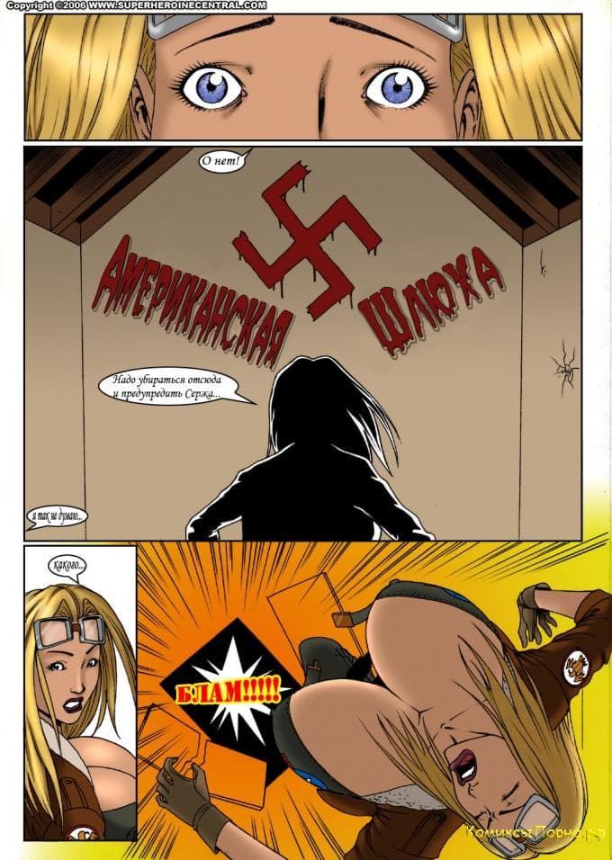 Перед вами порно комикс, состоящий из bdsm рисунков. В этой истории насилуют большегрудую шпионку Бутси. Она принимает в себя члены врагов и глотает их сперму.