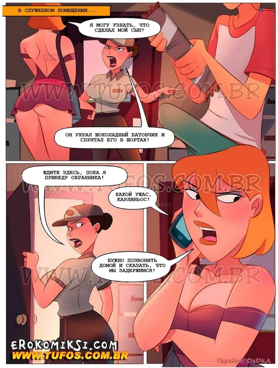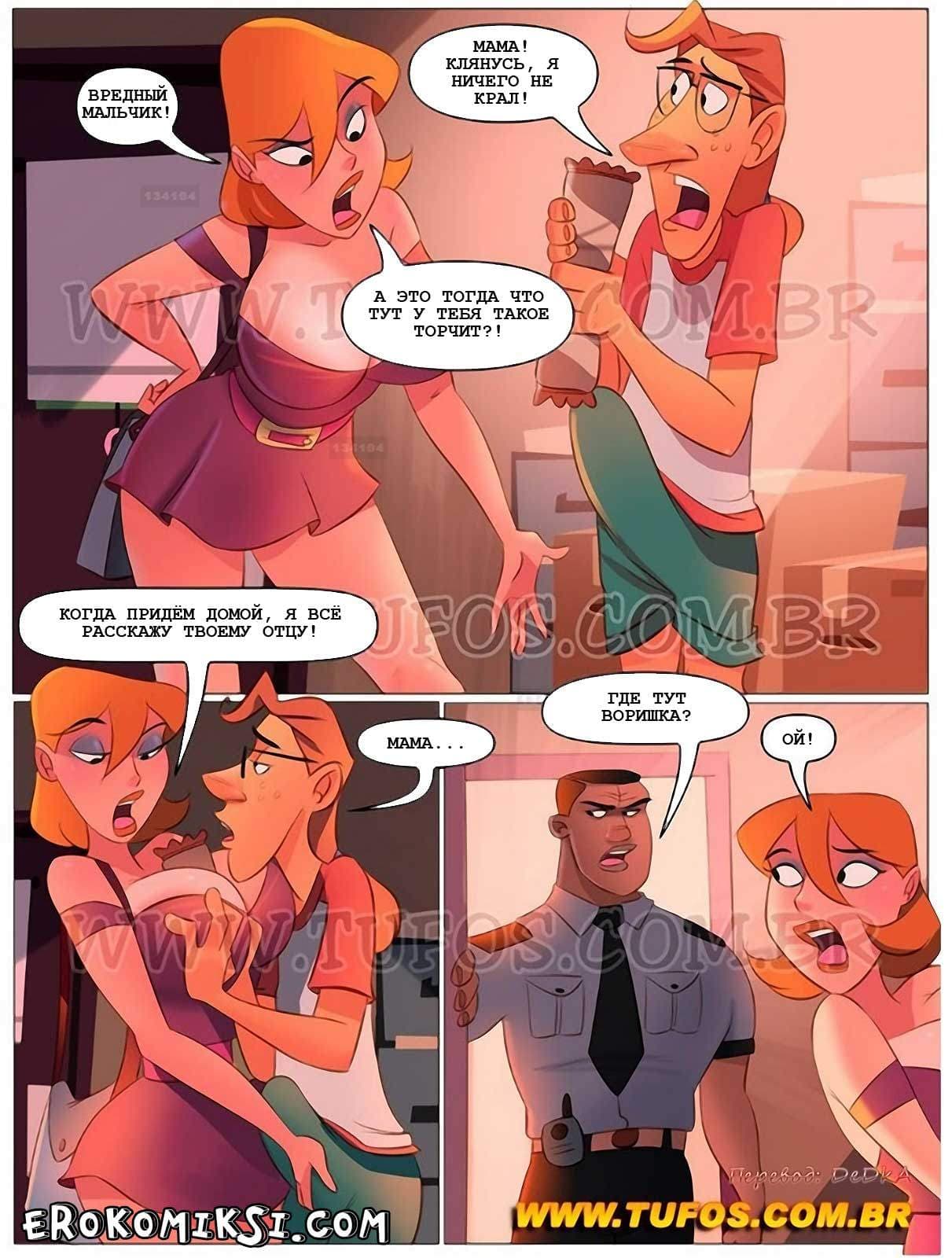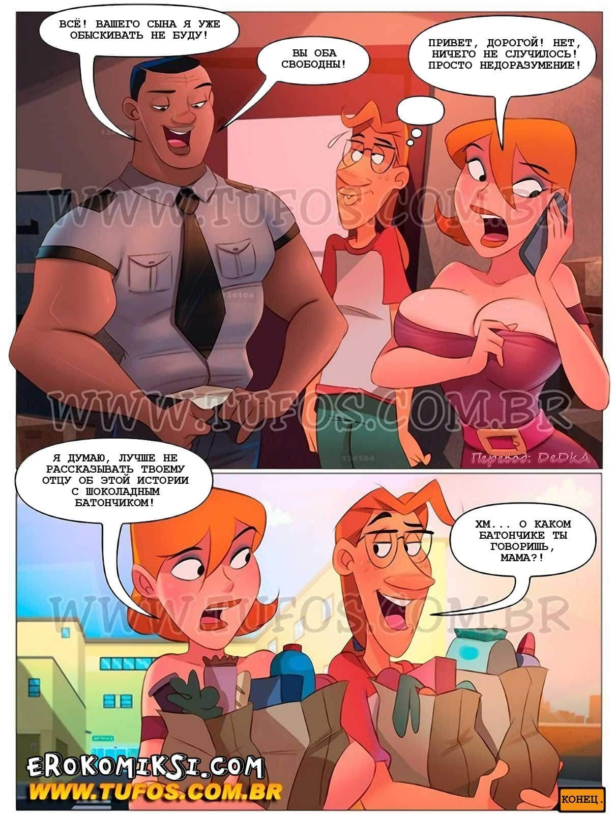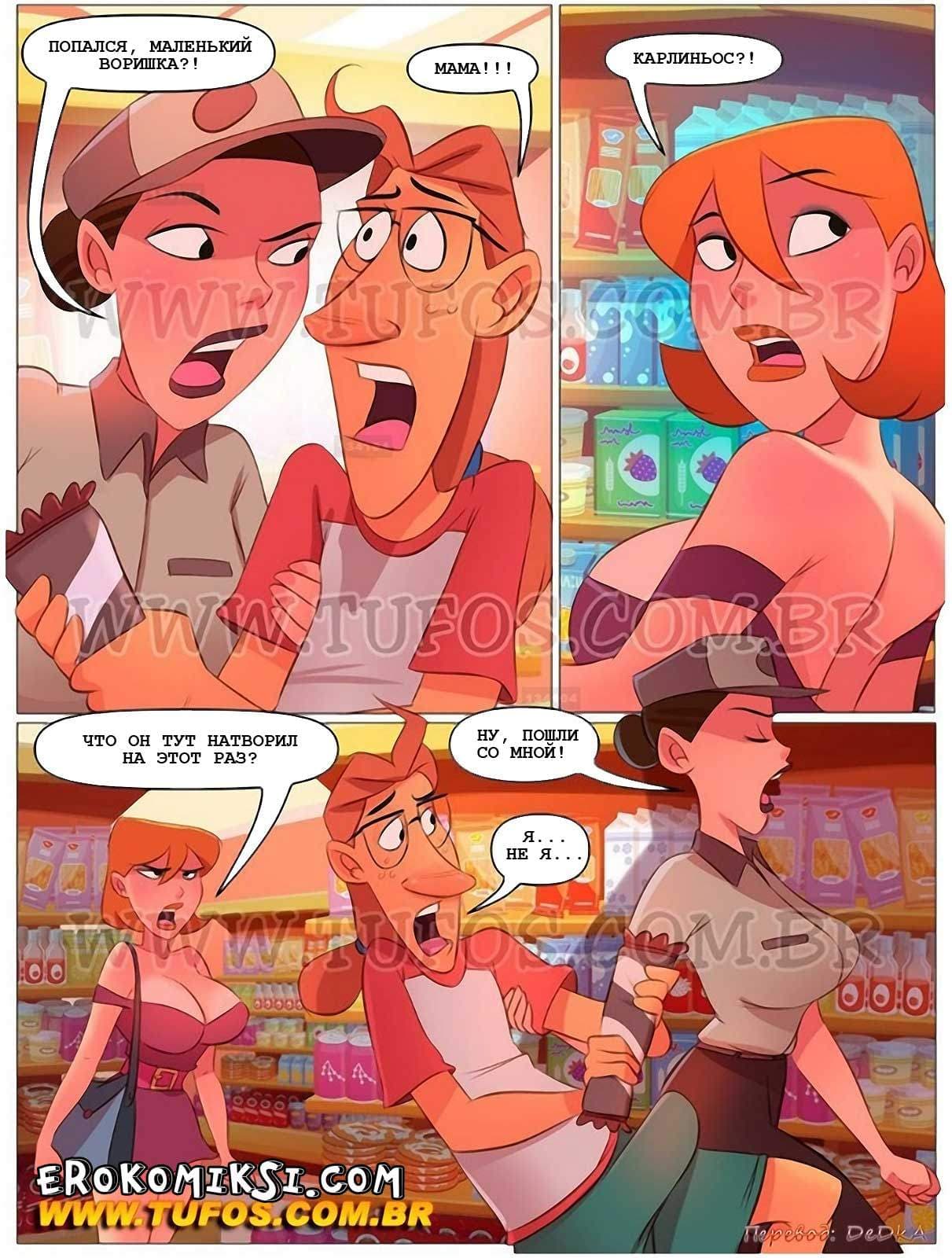 Пошлый комикс Похотливая семейка часть 32 расскажет, как Мария решила закупить продукты на месяц и взяла с собой в супермаркет Карлиньоса. В супермаркете было