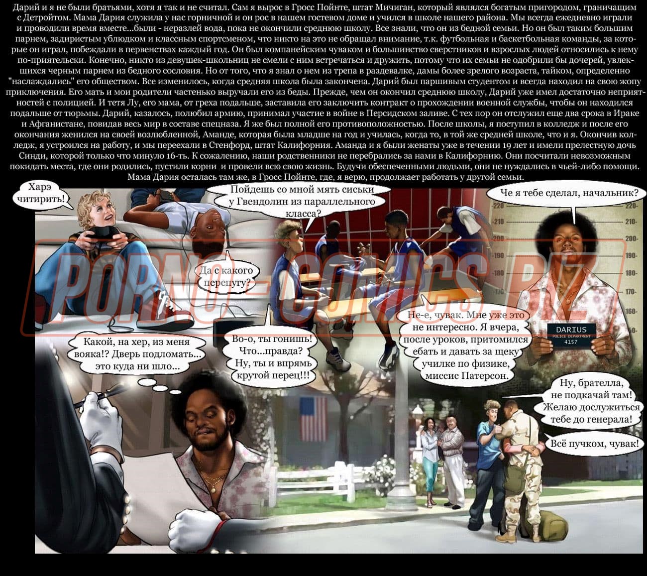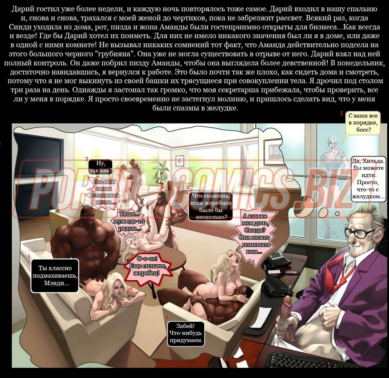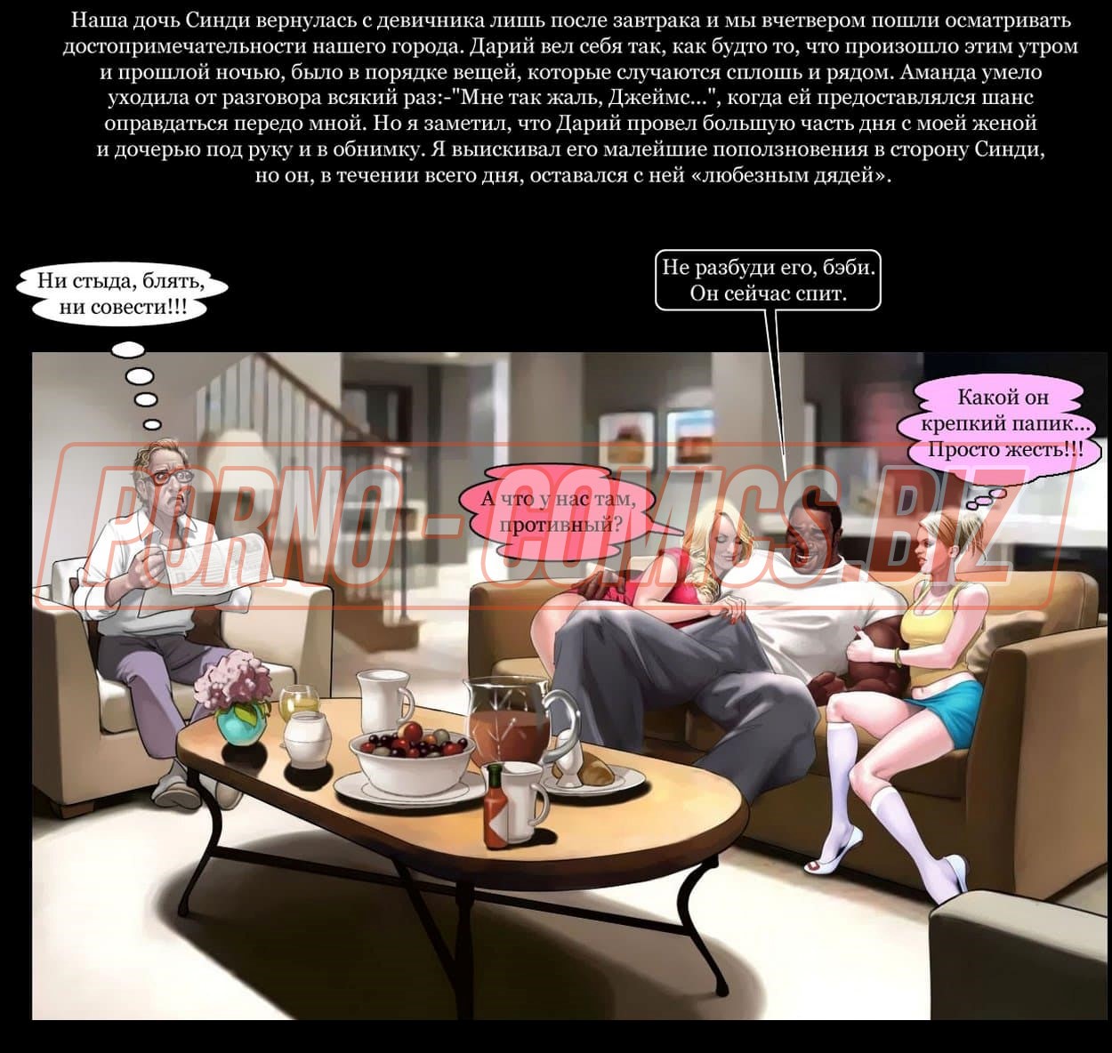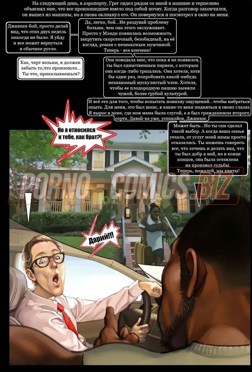 Смотрите эротический секс комикс о том, как чернокожий развратник с нереально огромным членом между ног и его приятель с белым цветом кожи после долгой разлуки решили собраться вместе и сыграть в карты. Взяв в компанию свою женушку, белый трахарь предлагает им втроем сыграть в карты. Начав игру, он не думал, что дойдет до того, что он проиграет ненасытному негру свою возлюбленную на всю ночь.