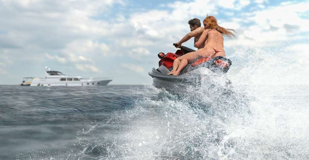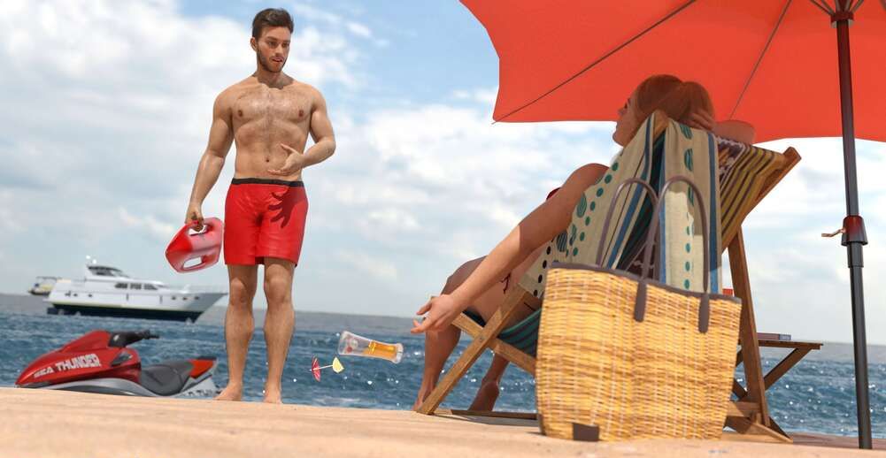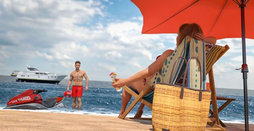 Сиськастая 3Д милфа с большой задницей, отдыхая на пляже, вдруг увидела нереально сексуального мужчину. Она так завелась, что даже выронила бокал с коктейлем на песок. Сучка побежала за трахарем, чтобы он прокатил ее на водном скутере. Чтобы парнишка согласился, милфа порадовала его минетом на суше и, прокатившись на скутере, попала на его яхту, где охотно отдалась на порку в жопу.
