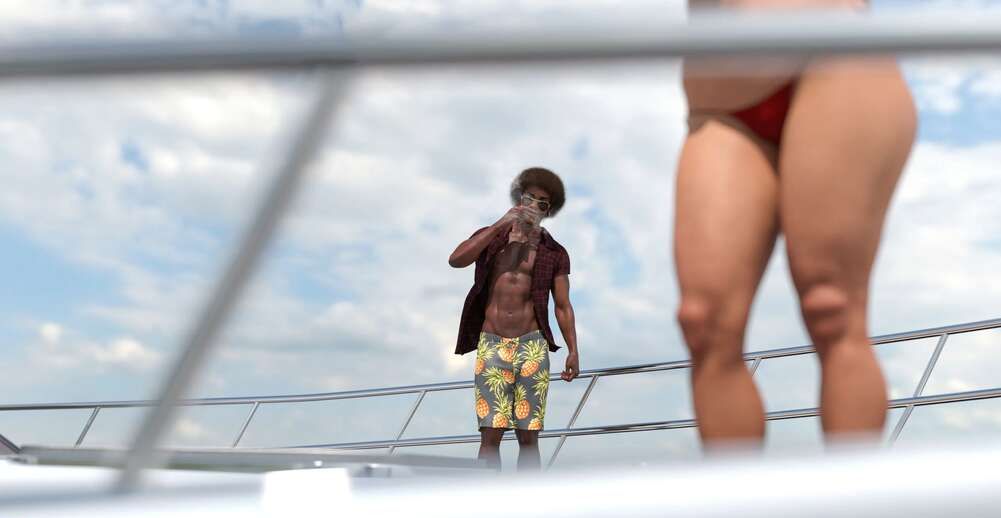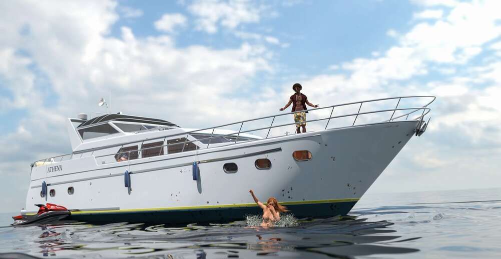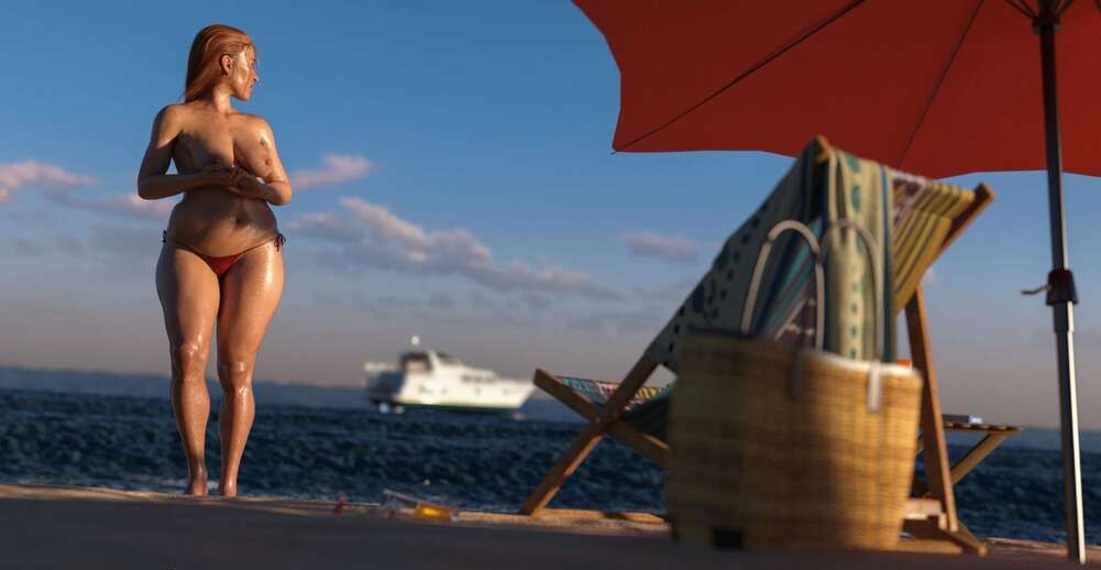 3д милфа нашла любовника на пляже чтобы трахнуться в попку на его яхте