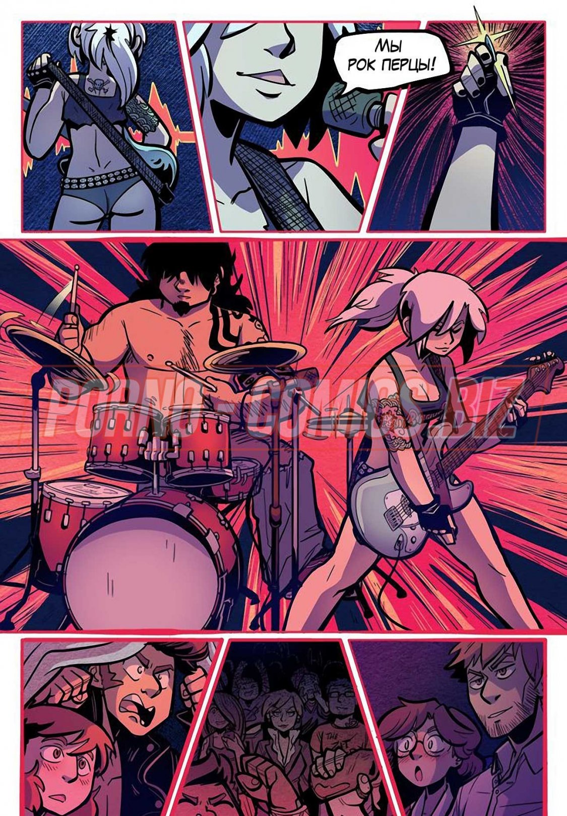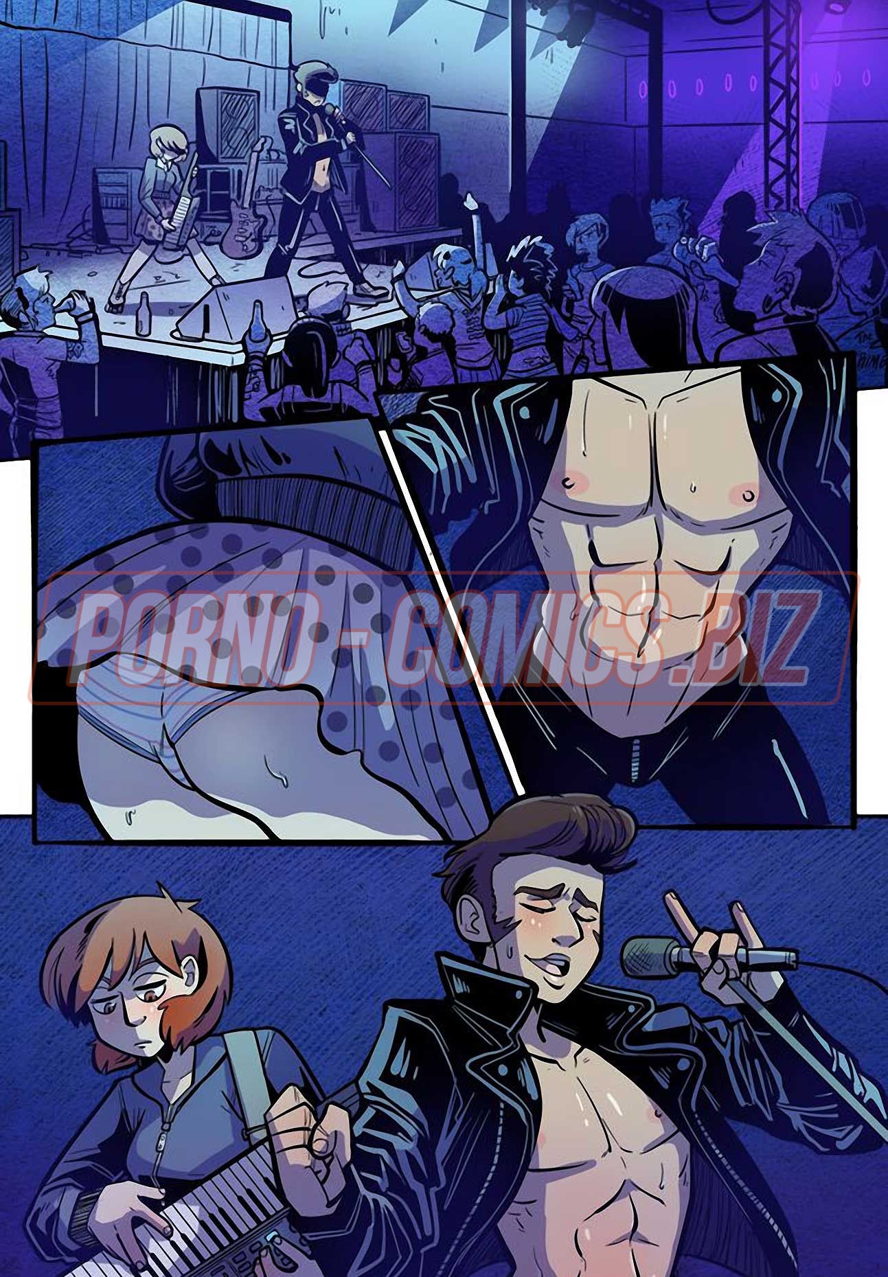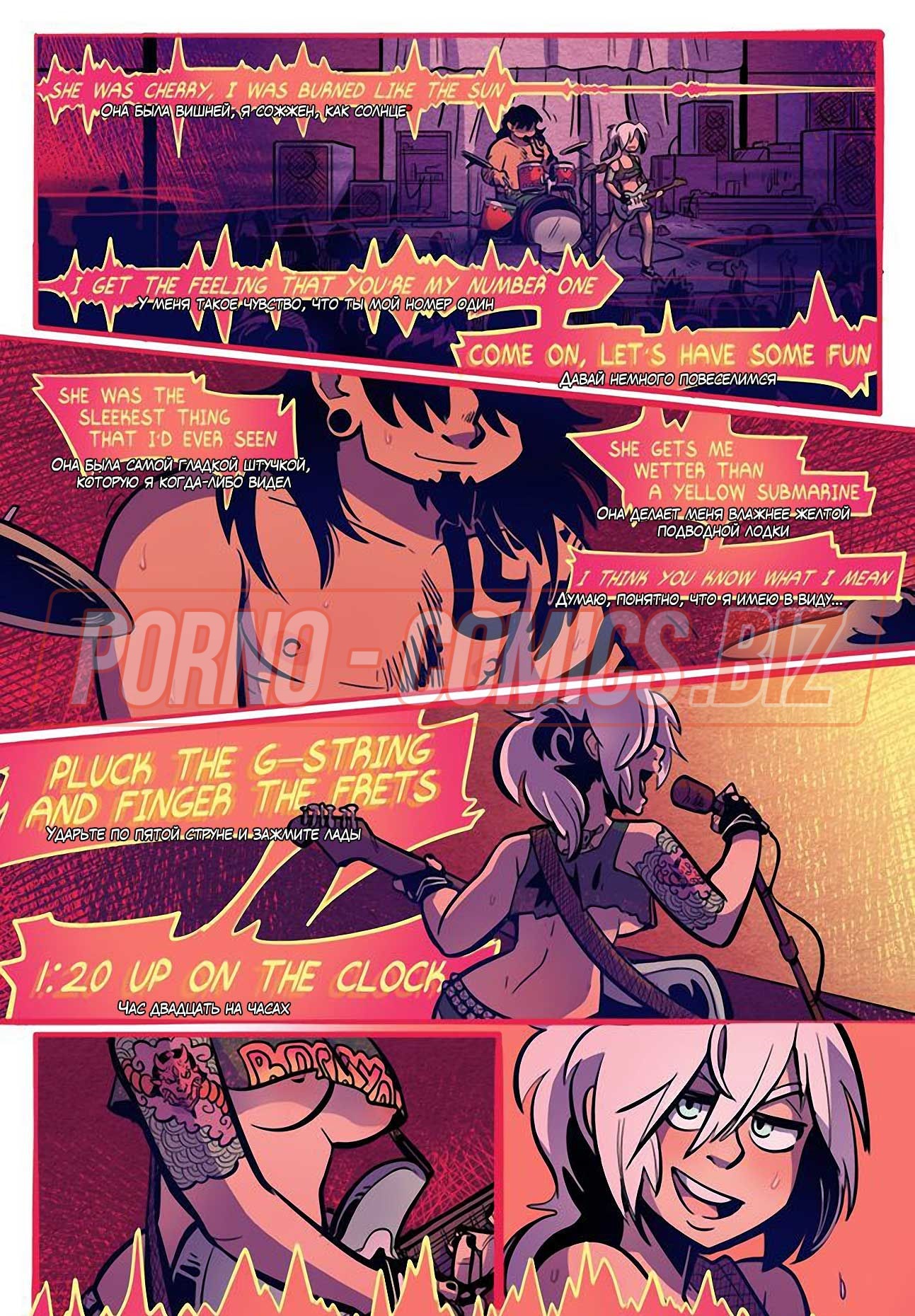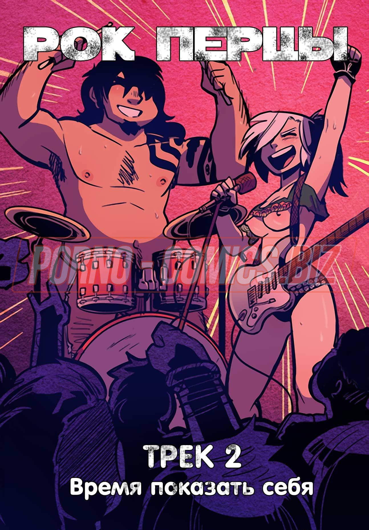 Уличные музыканты из секс комикса «Рок Перцы. Трек 2 Время показать тебя» живут прямо на улице и ведут довольно таки развратный образ жизни. У них очень мало денег, поэтому их одежда слишком проста и грязна. Телочки, чтобы заработать деньги на еду, показывают прохожим сиськи и даже делают им минеты. Когда группе музыкантов поступает деловое предложение, они сразу соглашаются.