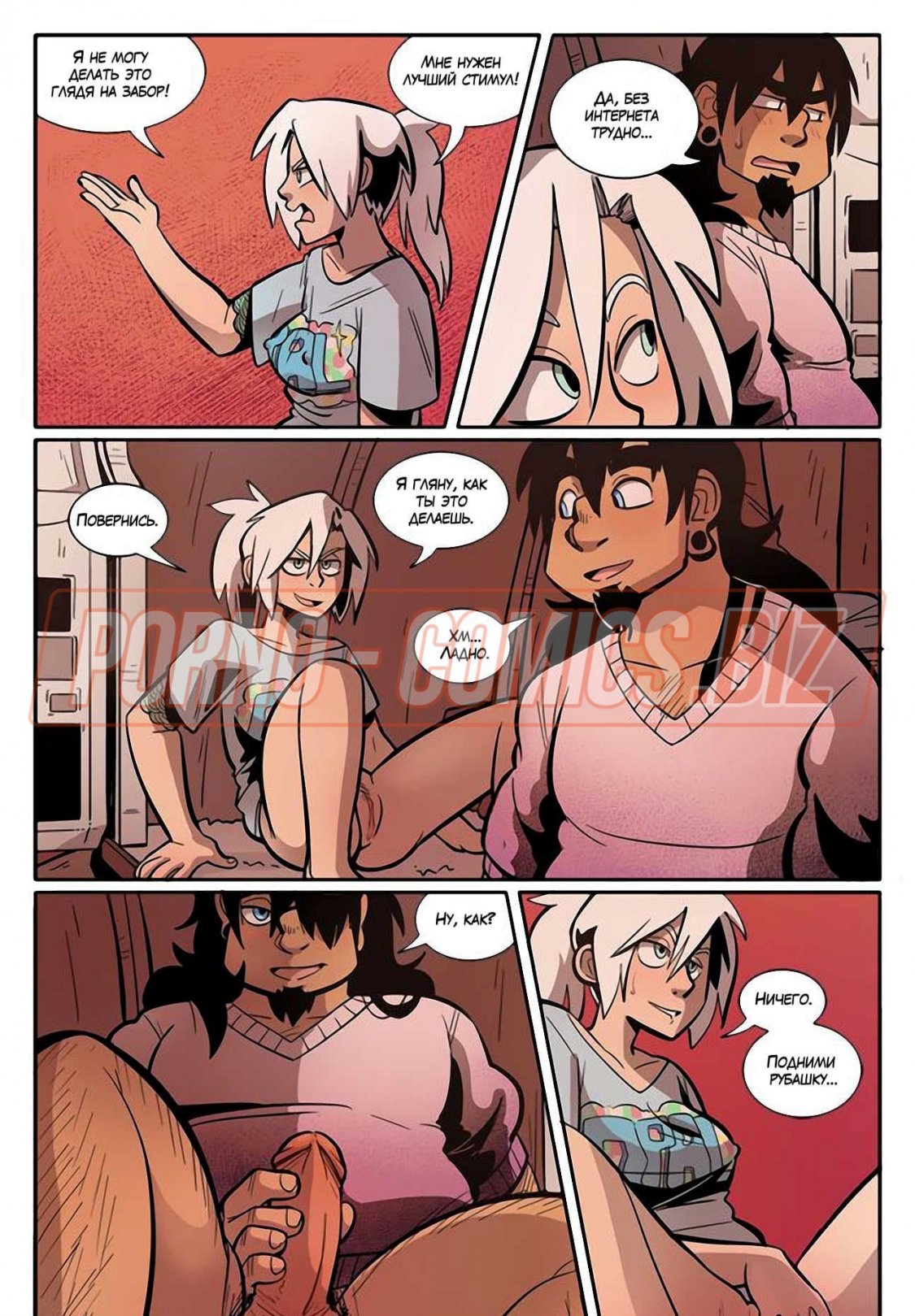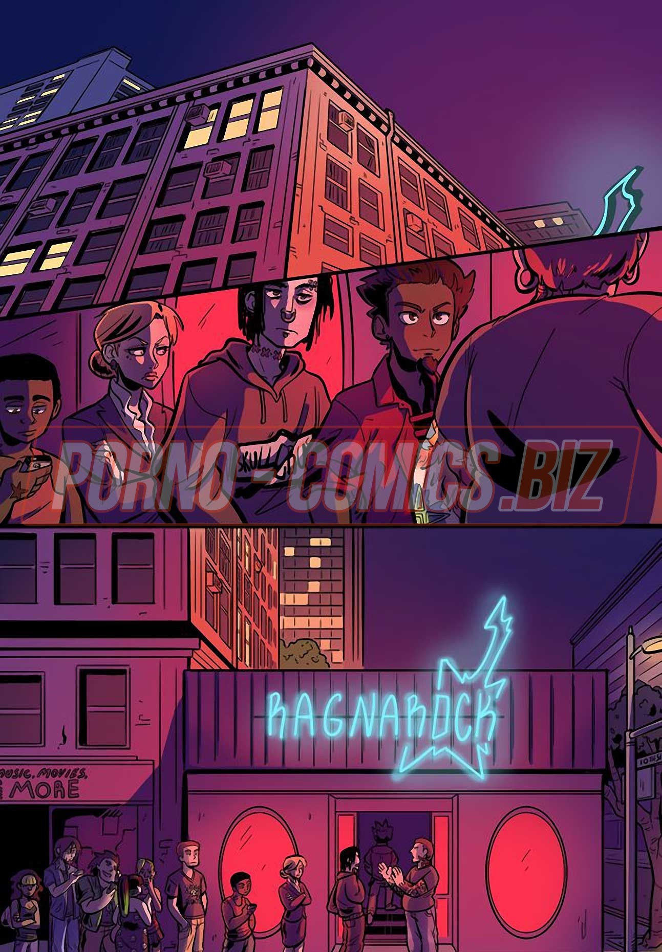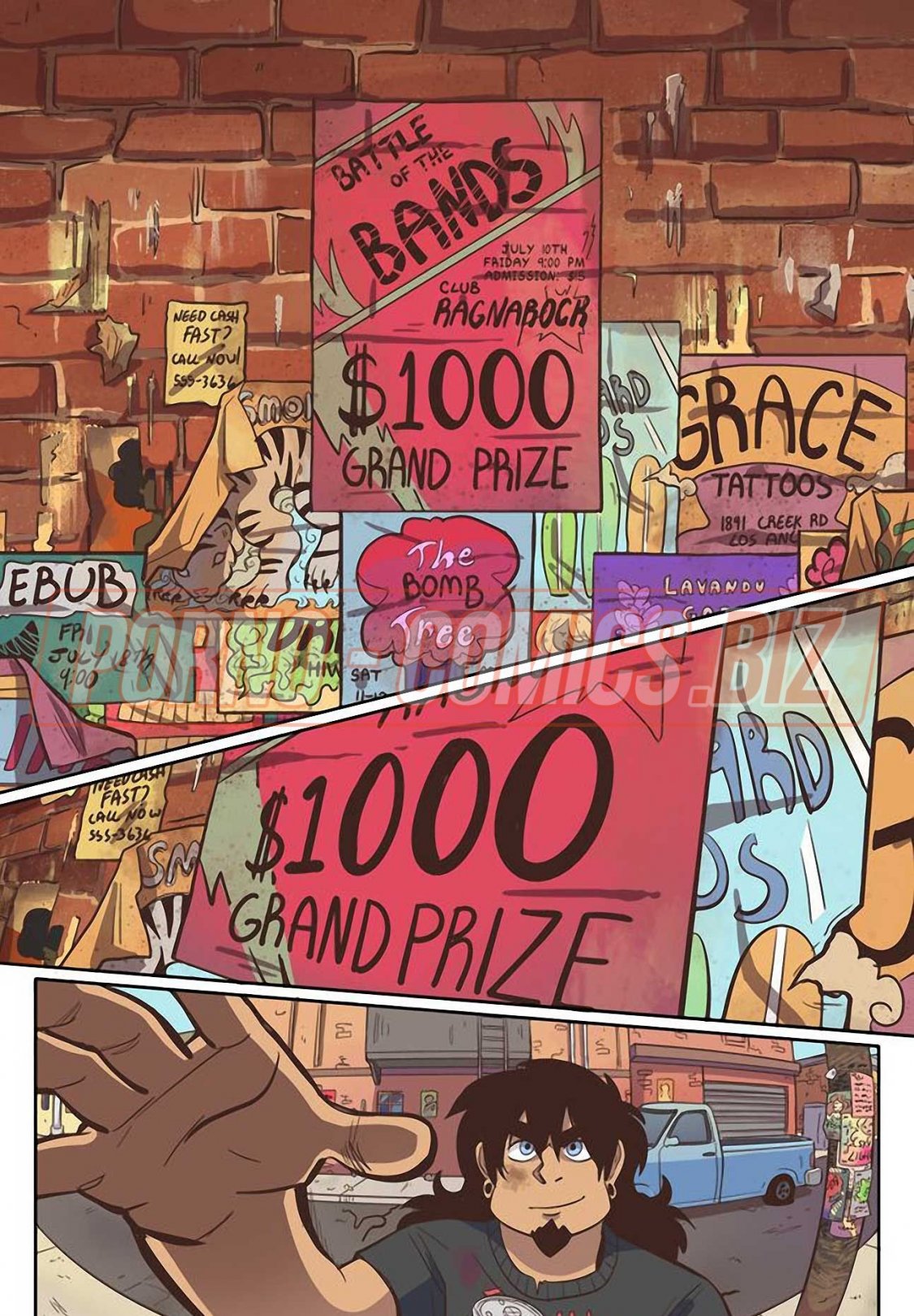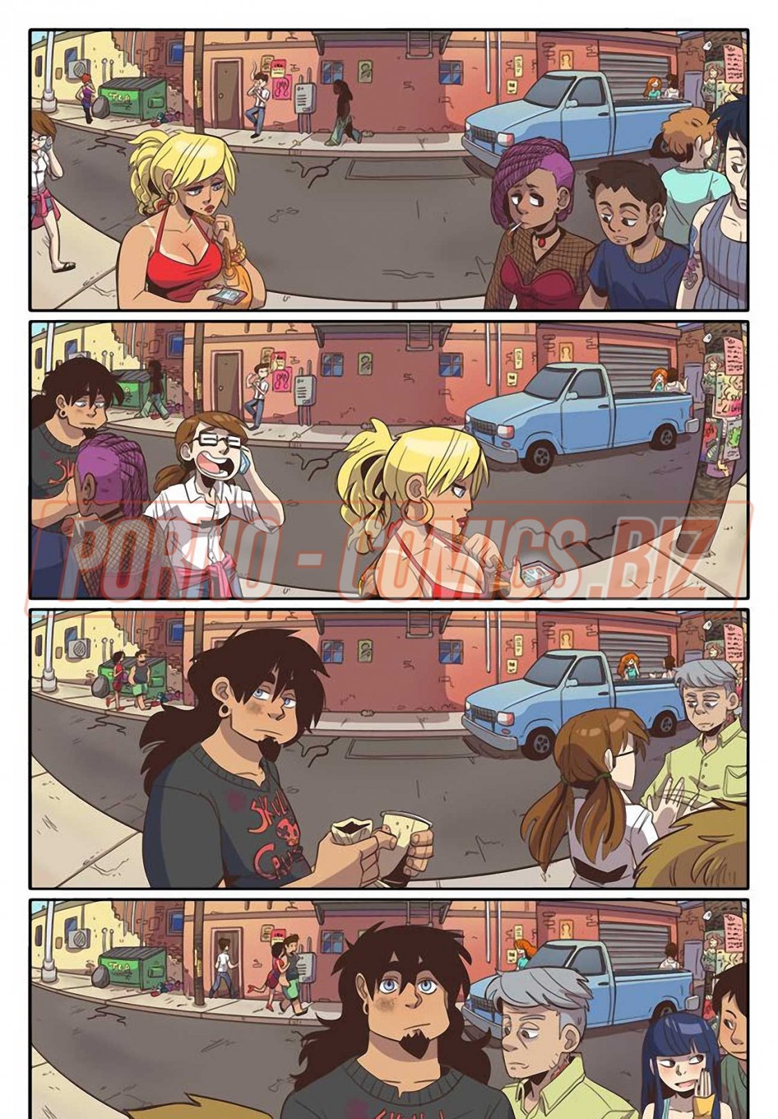 Уличные музыканты из секс комикса «Рок Перцы. Трек 2 Время показать тебя» живут прямо на улице и ведут довольно таки развратный образ жизни. У них очень мало денег, поэтому их одежда слишком проста и грязна. Телочки, чтобы заработать деньги на еду, показывают прохожим сиськи и даже делают им минеты. Когда группе музыкантов поступает деловое предложение, они сразу соглашаются.
