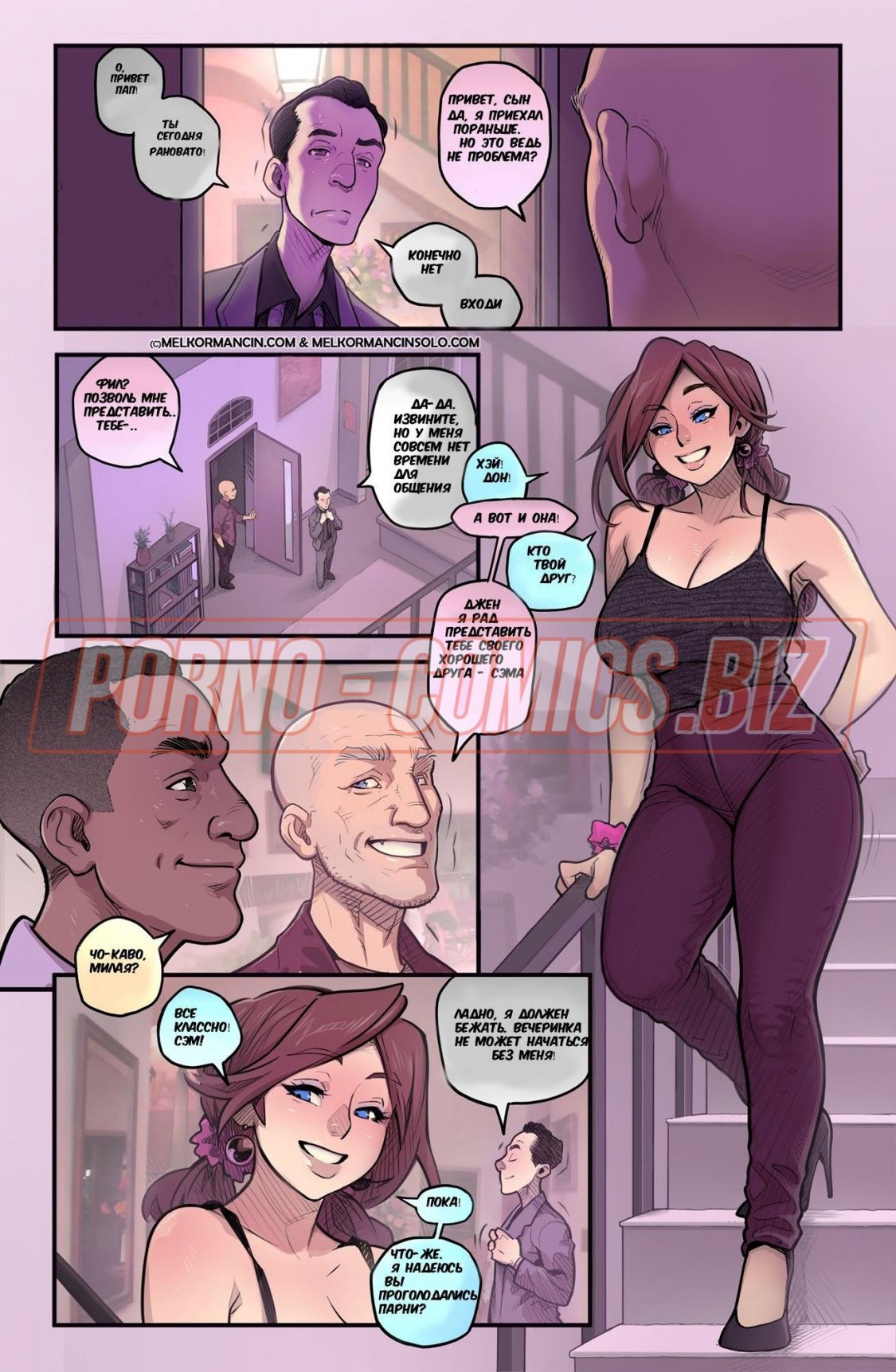 Пышногрудая героиня порно комикса "Сладкоежка" так любит что-то сладкое и вкусное, что даже посреди ночи лижет конфеты, а потом пихает их себе в пилотку или в анал. Проснувшись снова посреди ночи, сладкоежка знакомится с отцом своего мужа. Когда тот предлагает пойти в бар, сучка смело соглашается. Сначала невестка держит дистанцию с ним, а потом отдается эмоциям и охотно занимается страстным сексом.