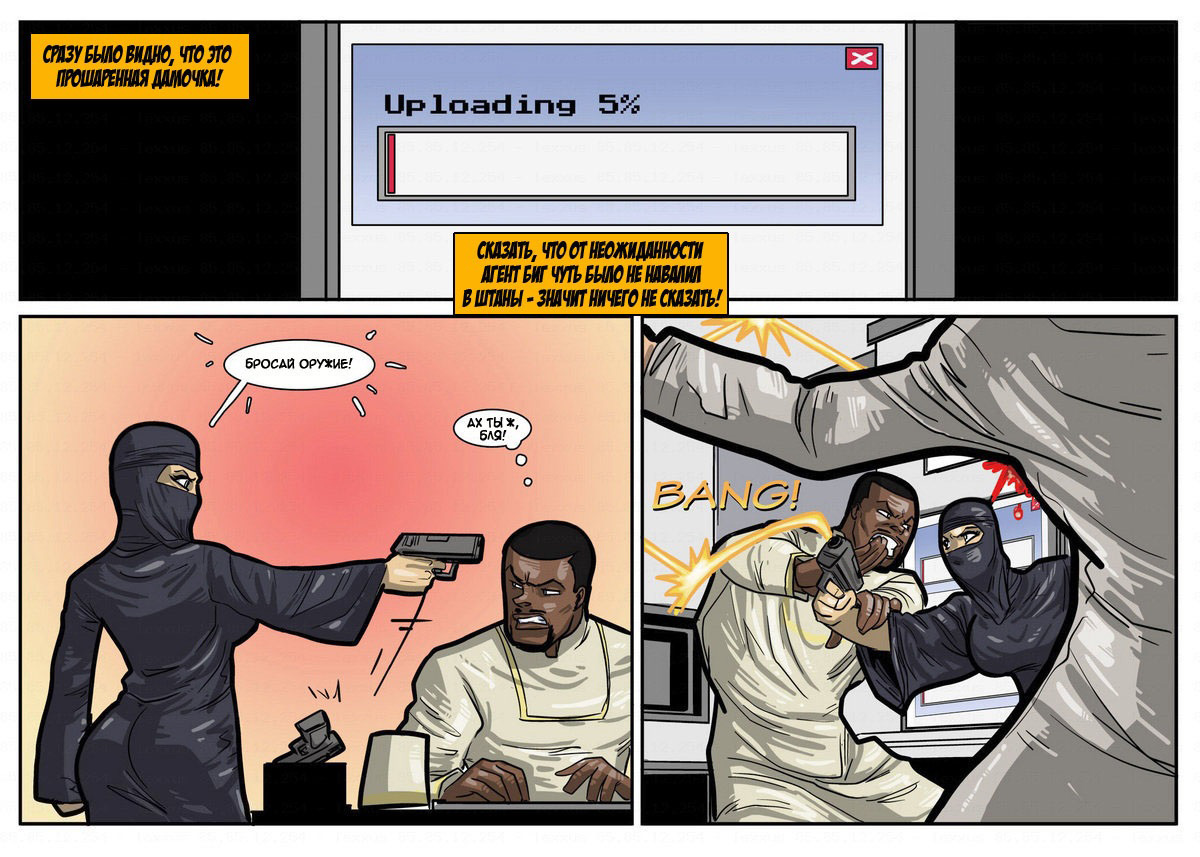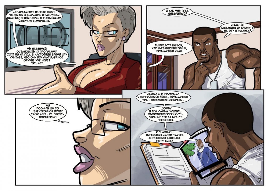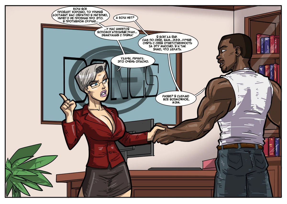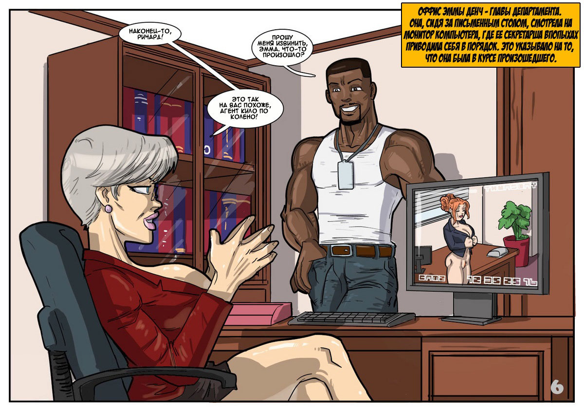 Работая в департаменте безопасности, чернокожий громила Ричард пользуется в компании особенным спросом. Кроме того, что он - лучший боец, он еще и классный любовник. Захаживая к секси секретарше в кабинет, чтобы круто с ней пошалить на столе, негр не знал, что начальница департамента установила камеру в каждом кабинете. Когда сучка вызывает его к себе и посылает на важное занятие, Ричард, попав на тайную базу противника, чтобы победить, потрахивает свою главную противницу.
