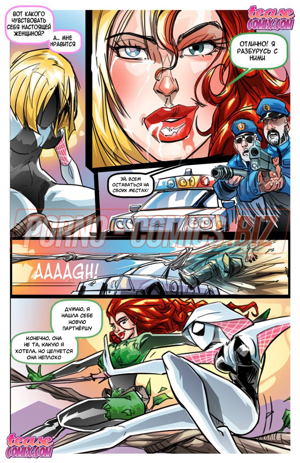 Когда главная героиня комикса «Джокер. Забытая сказка» заскучала, то решила надрочить свою сладенькую киску прямо в постели. Чтобы лучше мастурбировалось, сучка берет в руки эротический комикс и начинает его читать. Там много секс историй про Человека-паука и его телочку, про Харли Квинн и ее Джокера и еще про каких-то супер героев.