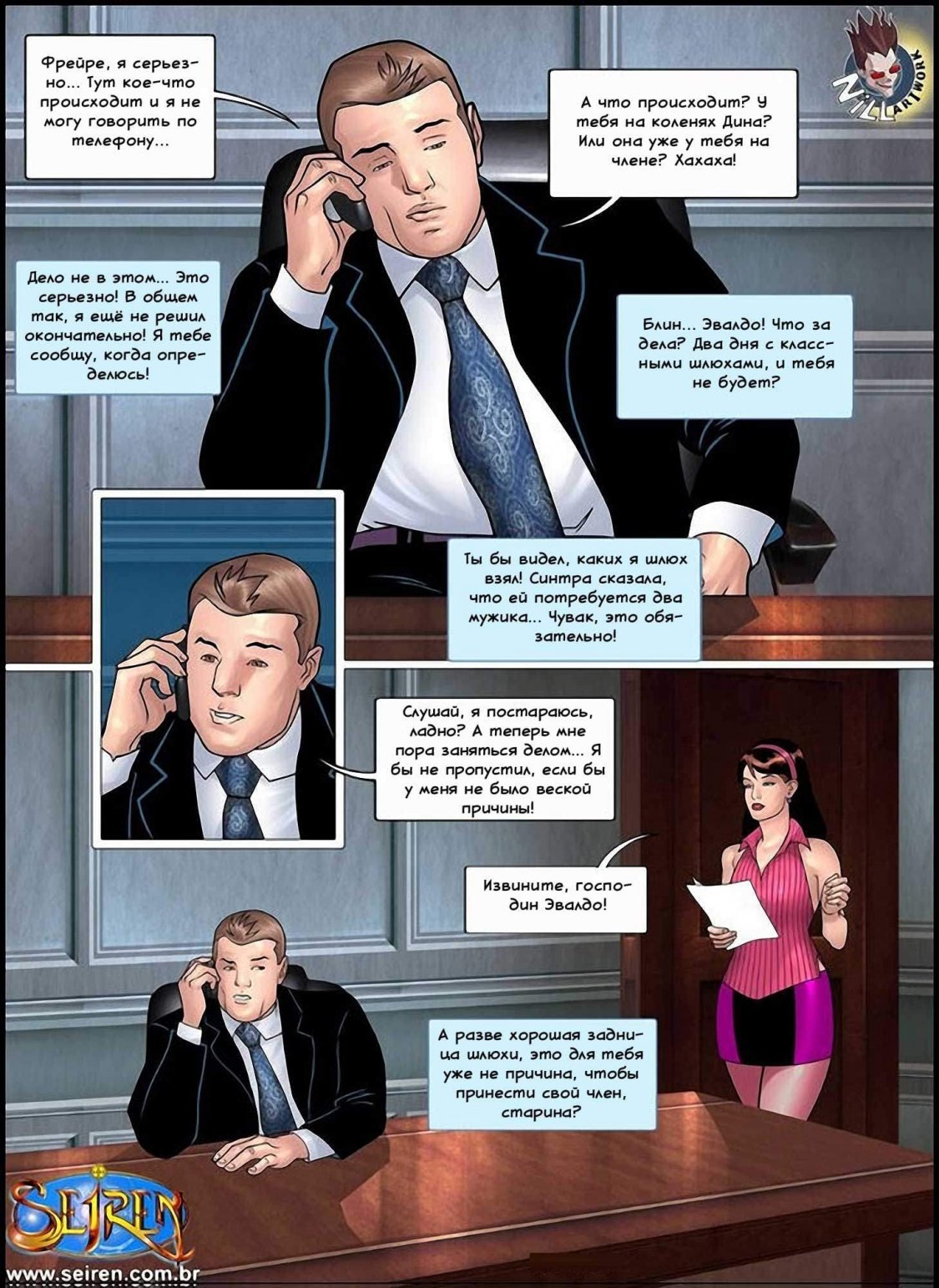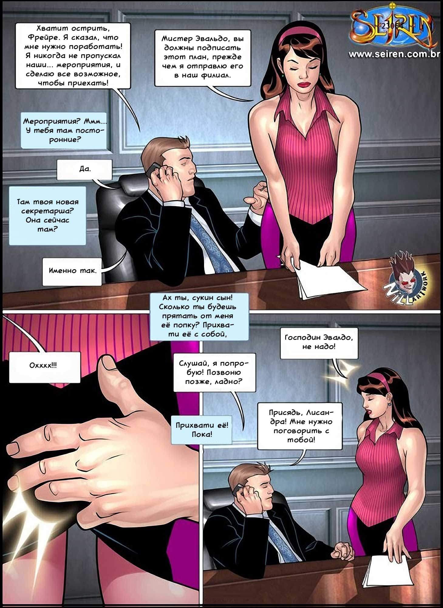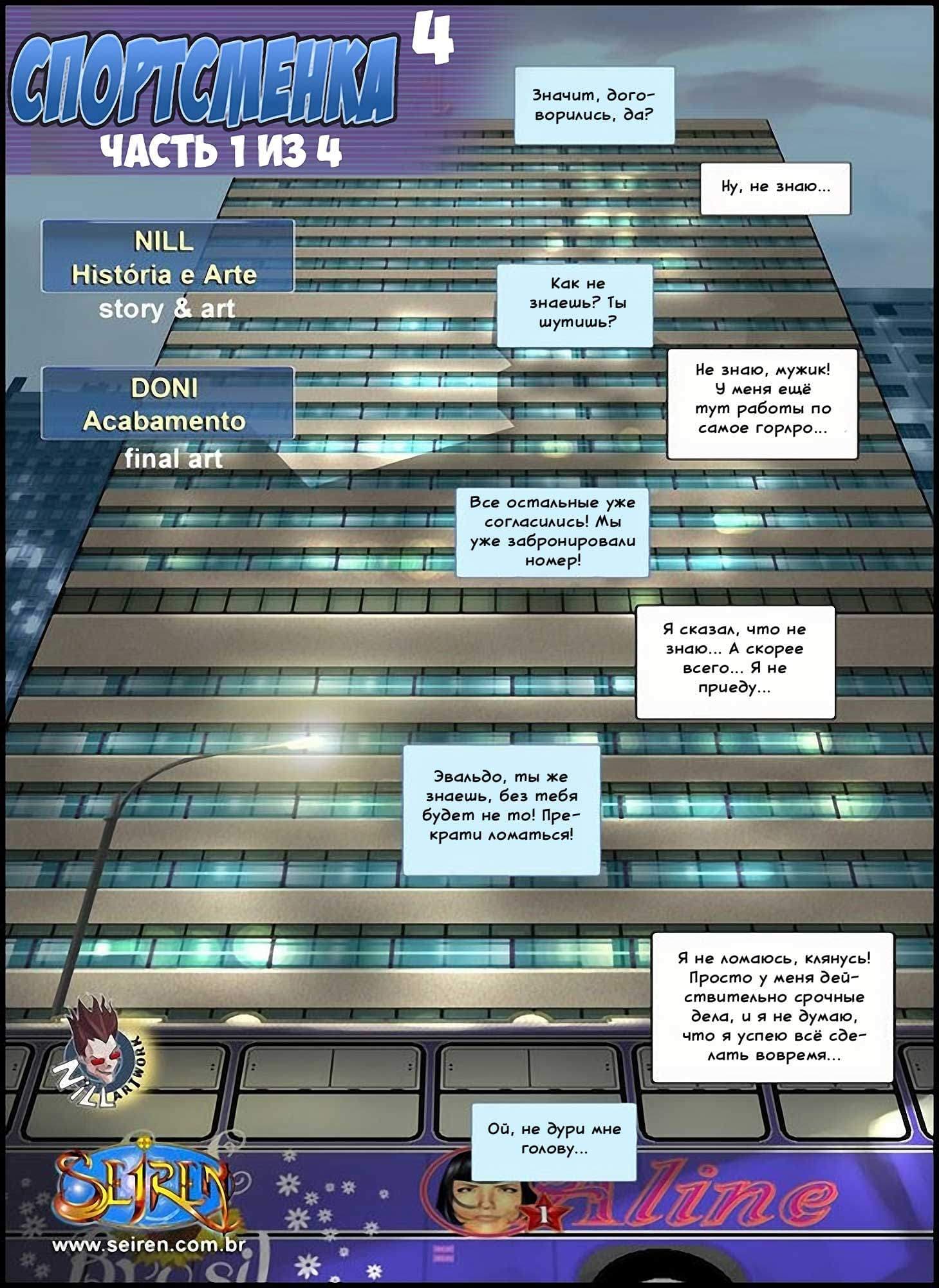 Порно комикс Спортсменка 4 часть, в очередном эпизоде расскажет о том, как друг босса Лисандры уговаривает его провести время со шлюхами, и просит, чтобы он прихватил на эту оргию и Лисандру... А в тренажёрном зале события развиваются неожиданным образом. Кажется, что тренер, которого главная героиня считала