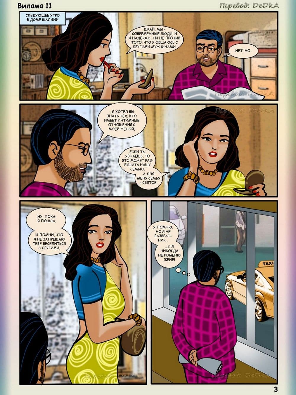 Возбуждающий индийский порно комикс о случайных изменах порядочной зрелой женщины Виламы с большой грудью, а также об очередном мужчине, который трахнул ее.