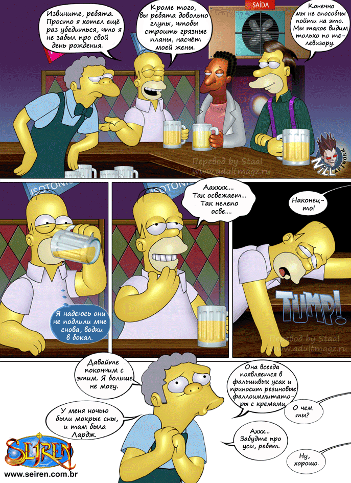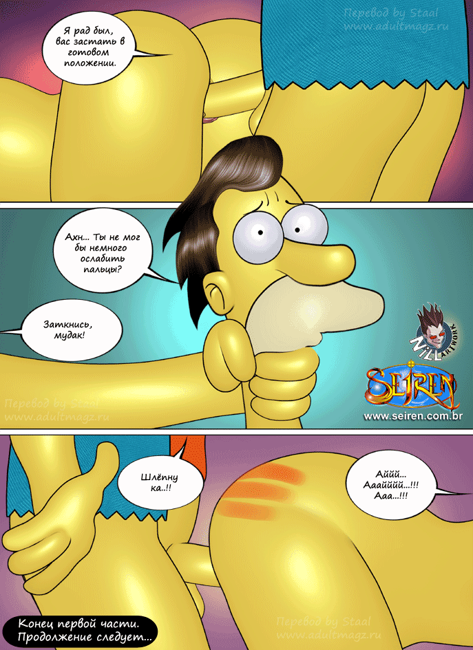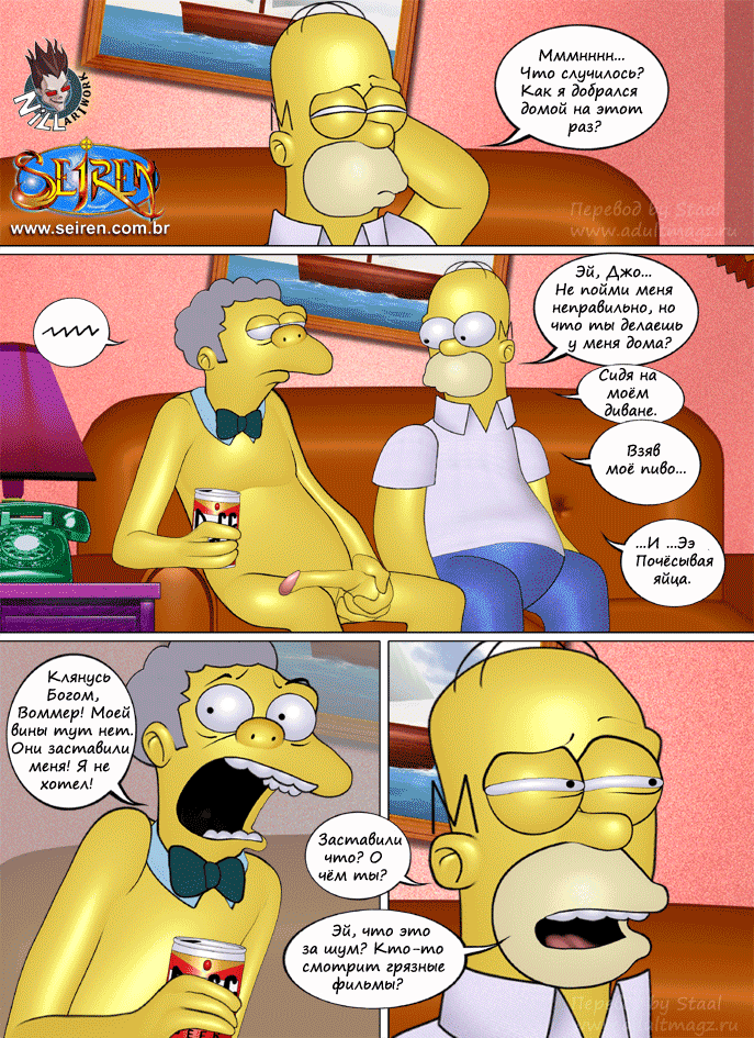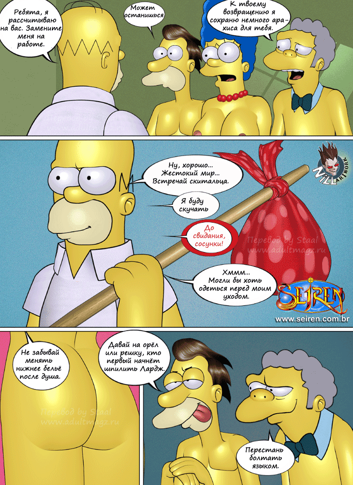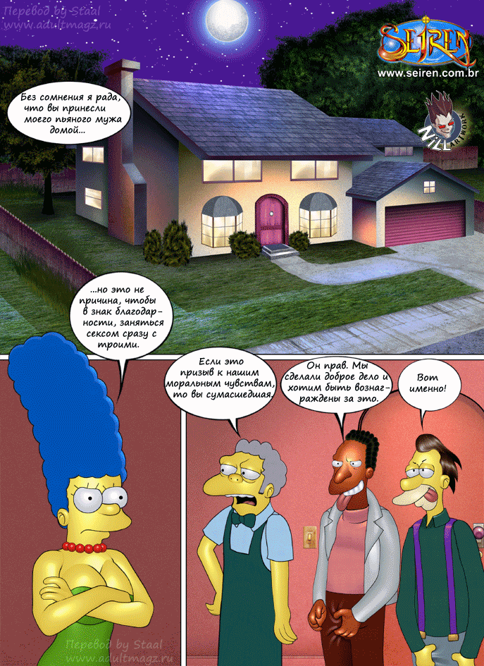 Порнокомикс об известных героях мультфильма Симпсоны. Жена Гомера Мардж изменяет ему с тремя его друзьями, и не только с ними...