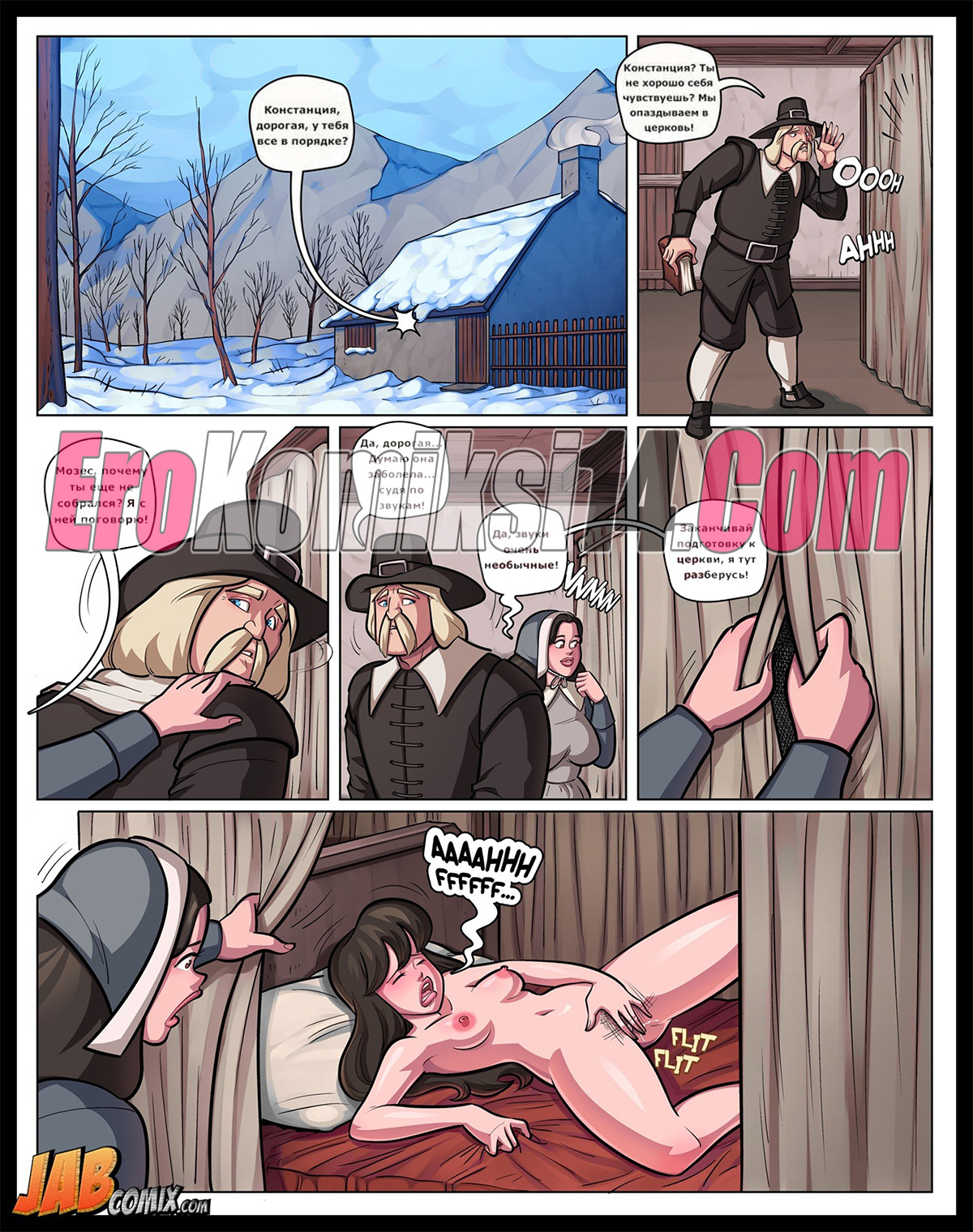 Порно комикс Молодая кровь. Девушка издает странные звуки из своей комнаты, мать подумала, что она заболела. А когда заглянула к ней, поняла, что она просто