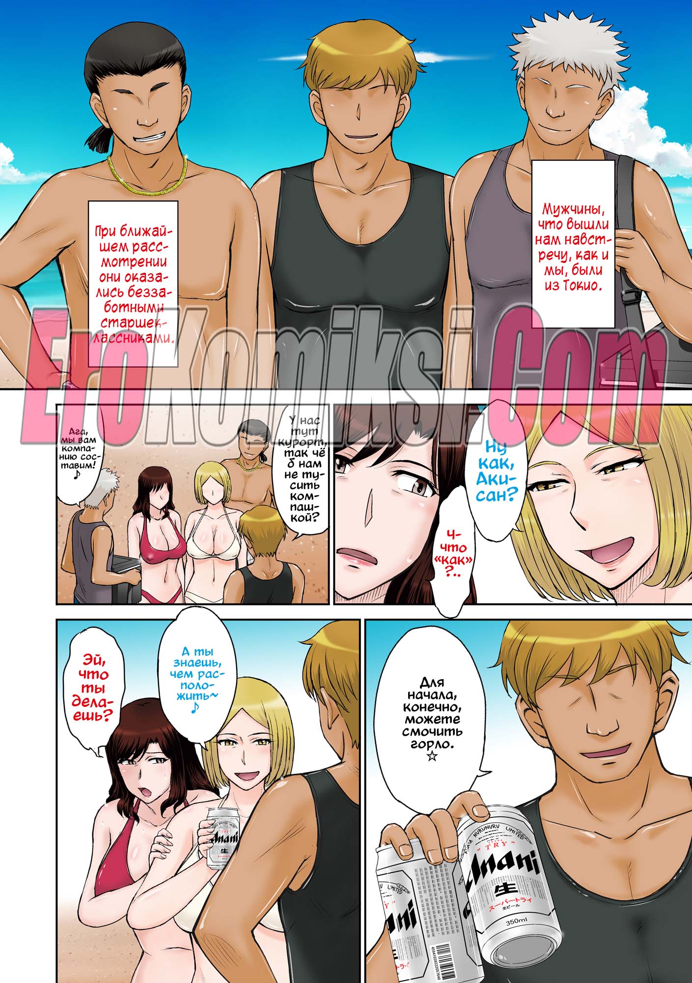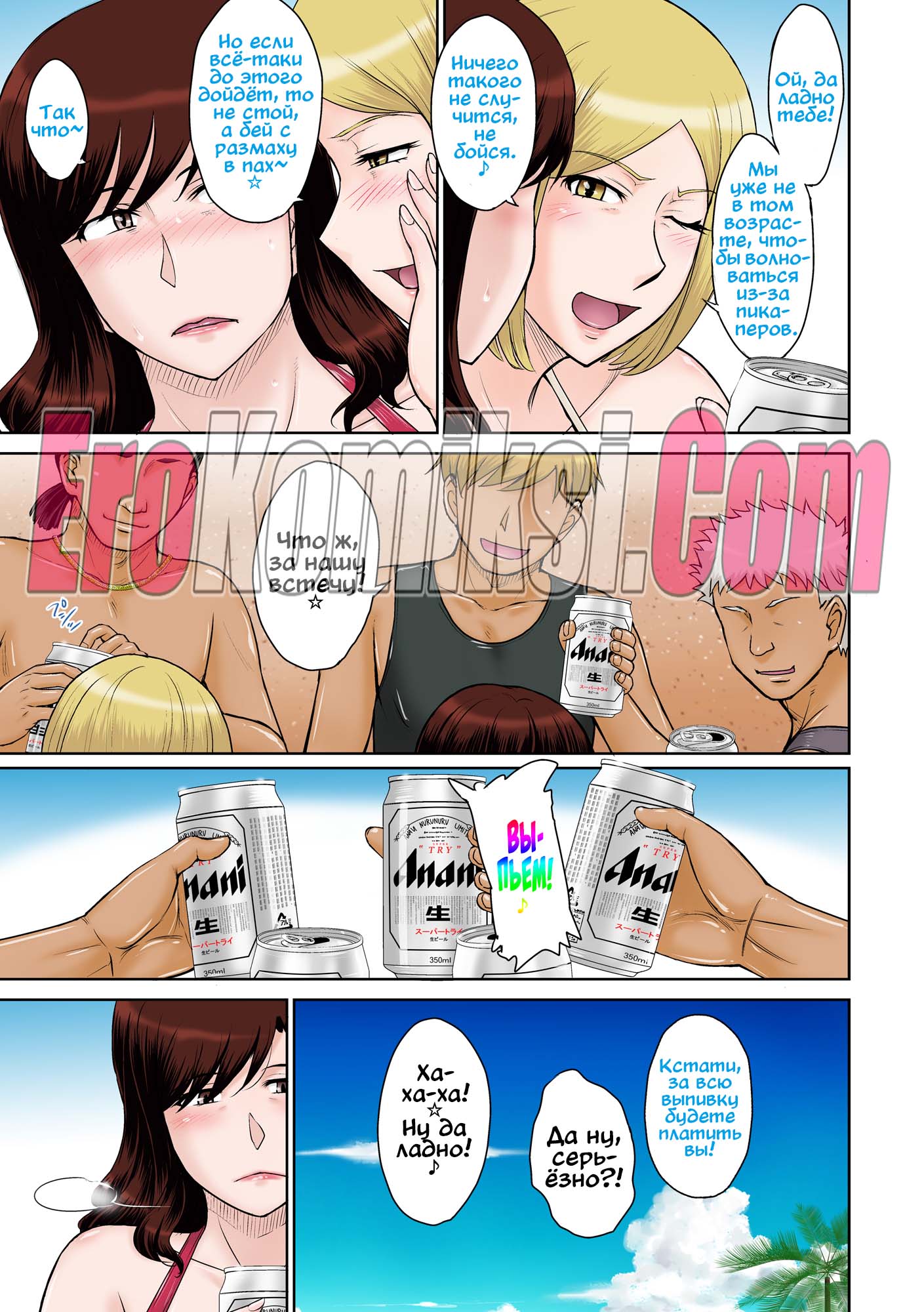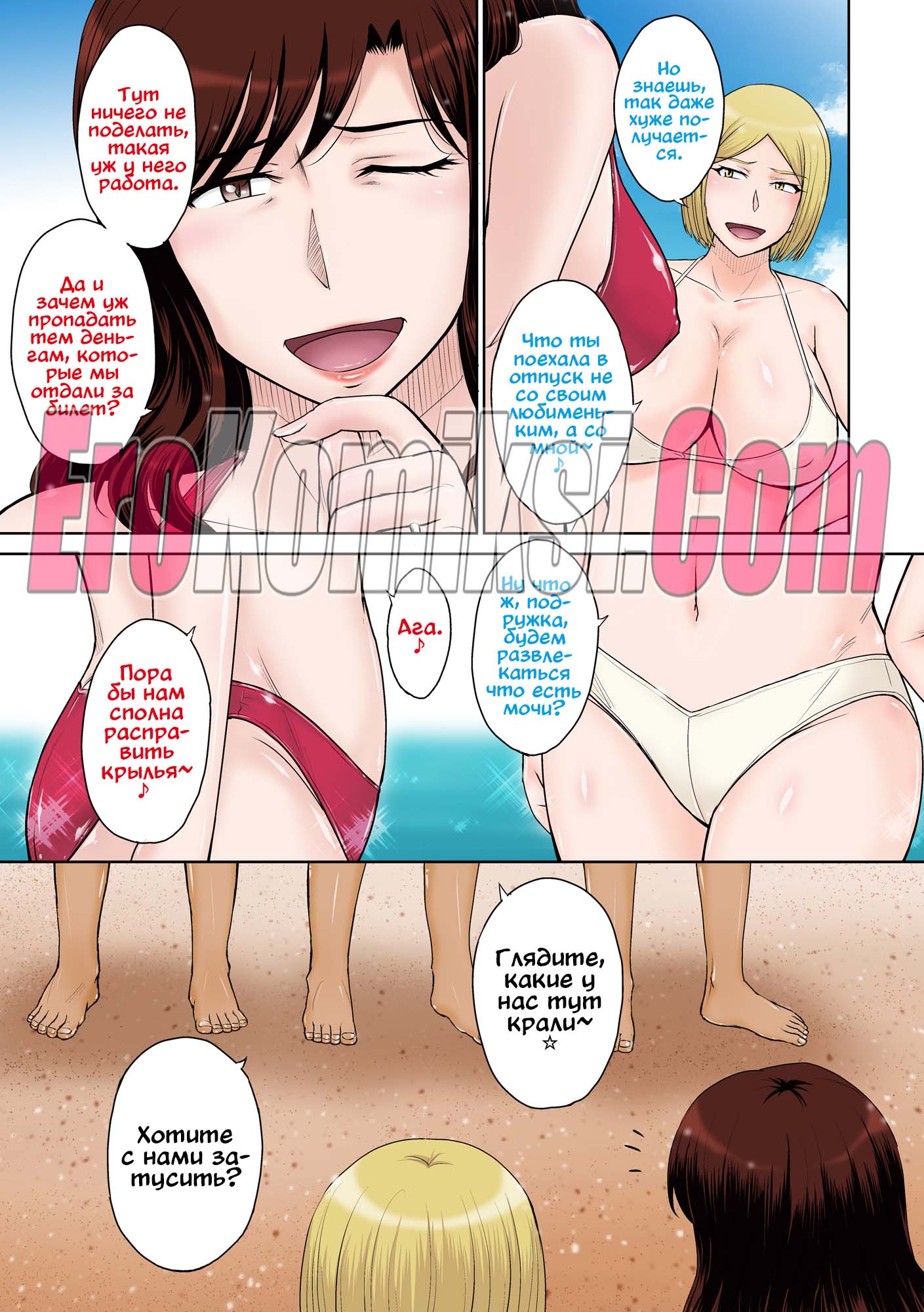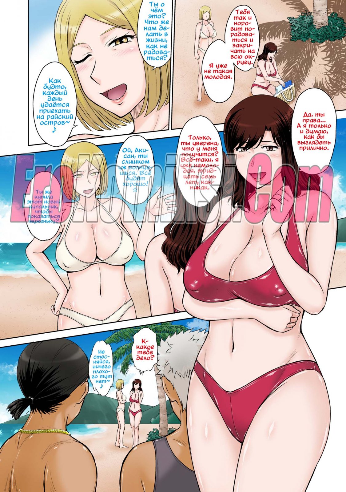 Порно комикс Островной курорт для небезопасной ебли замужних домохозяек Две горячих сисястых милфы отправились на курорт, чтобы отдохнуть от своих мужей. Там на них положили глаз несколько молодых парней, которые стали ласкать сучек, после чего мощно их выебали.
