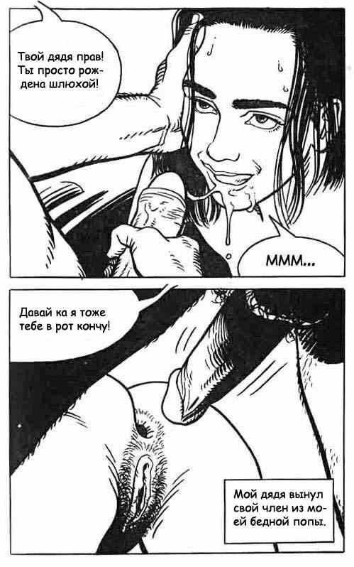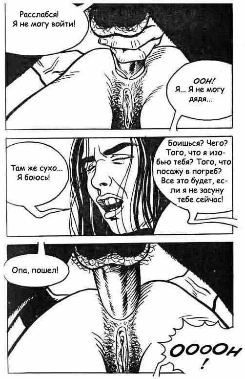 Порно рассказ, показанный в комиксе об инцесте дяди со своей племянницей, а также о куче других мужиках, которые использовали девушку в качестве рабыни.