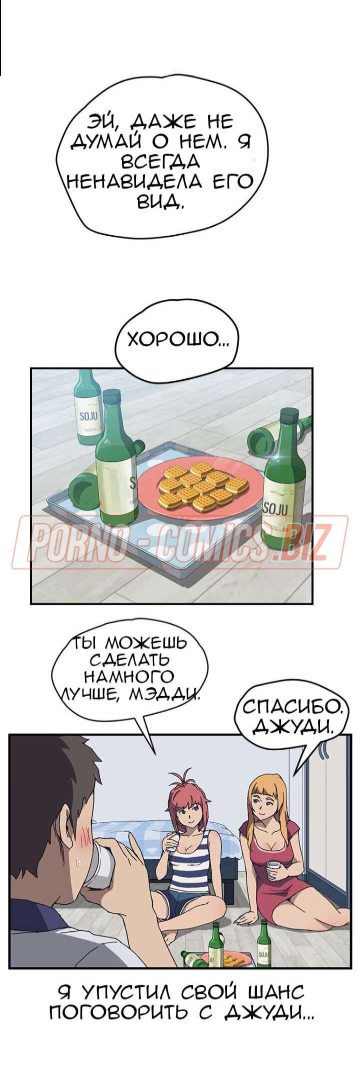 Смотрите вторую часть возбуждающего порно комикса "Нежелательная соседка". Две подружки, решив выпить пива, приглашают к себе в комнату еще и знакомого. Парнишка давно знаком с одной телочкой, а вот с ее лучшей подругой - нет. Увидев сиськи незнакомки, он теряет дар речи. Заметив это, его приятельница очень обижается и уходит в другую комнату. Оставив их наедине, подруга не знала, что они начнут говорить на пикантные темы и друг друга соблазнять.