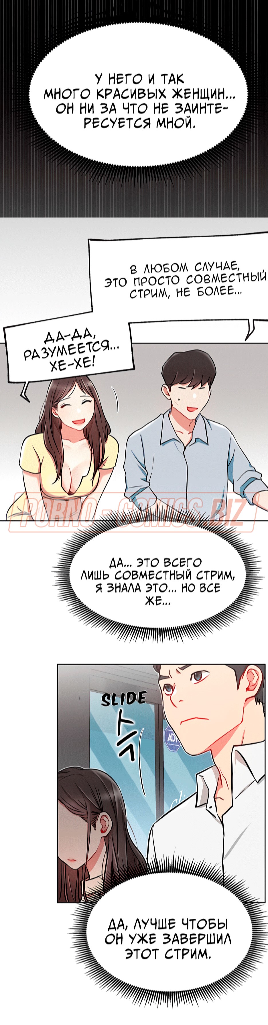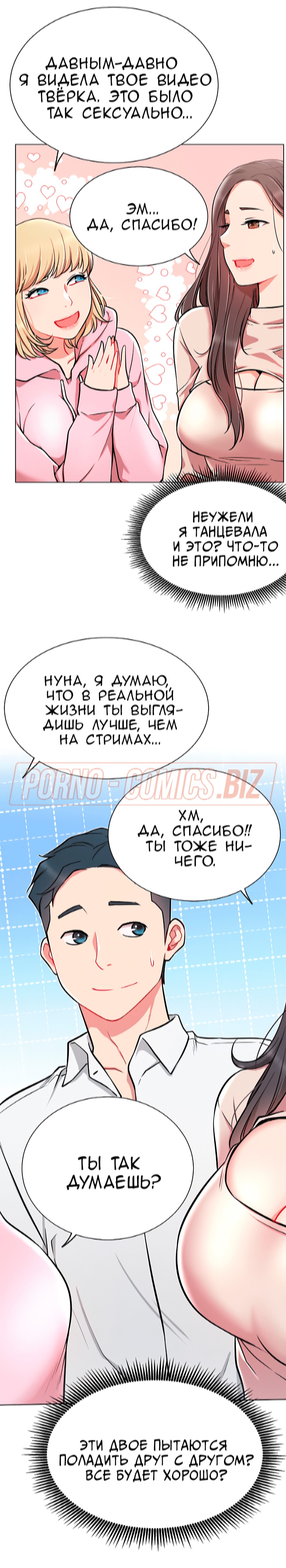 Молоденькие персонажи секс комикса «В прямом эфире. Ты хочешь на стрим? Части 11» впервые встретившись друг с другом в реальной жизни, поняли, что вживую они выглядят куда привлекательнее. Долгий разговор закончился тем, что персонажи почувствовали друг к другу влечение и даже признались в чувствах. Быть может, теперь эта сладкая парочка будет всегда стримить вместе.