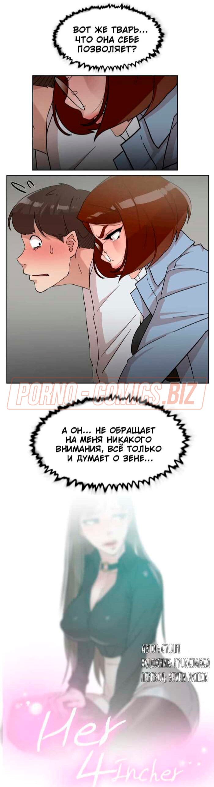 Главный персонаж порно комикса под названием «Её 4 размер», начав встречаться с двумя телочками сразу, каждый день об этом сожалеет. Он никак не может сделать выбор в сторону одной сучки или другой. Оставшись наедине с Зеной, развратник все-таки понимает, что она ему нравится больше. Во время секса ему нравится ласкать ее красивые сосочки, после чего ебать в киску и признаваться в любви.