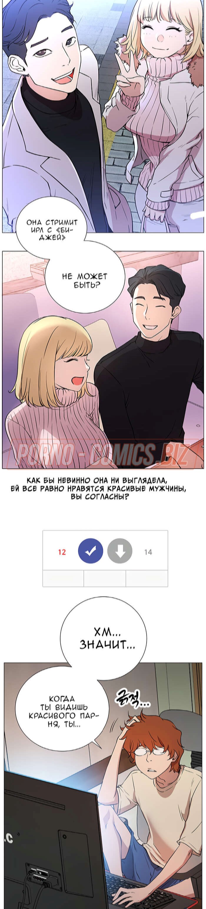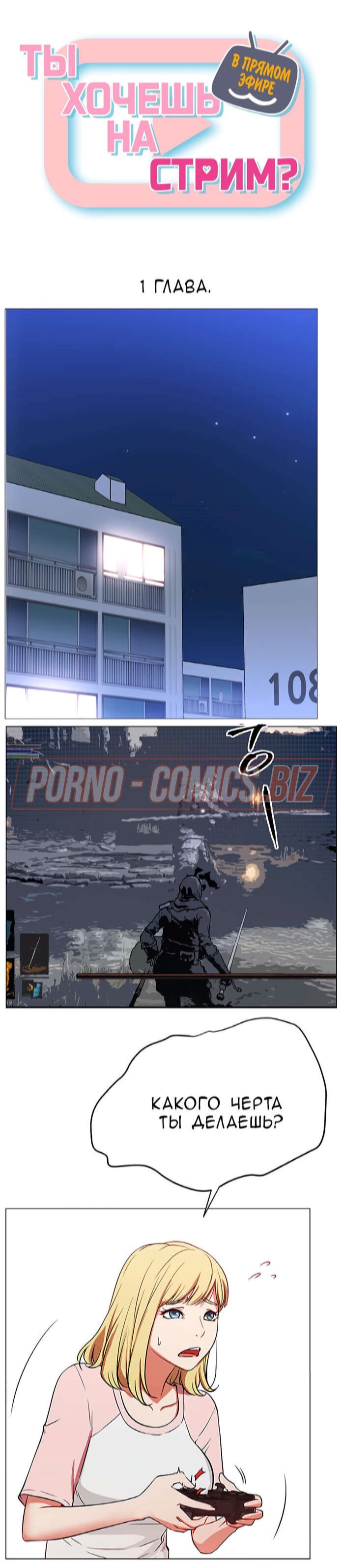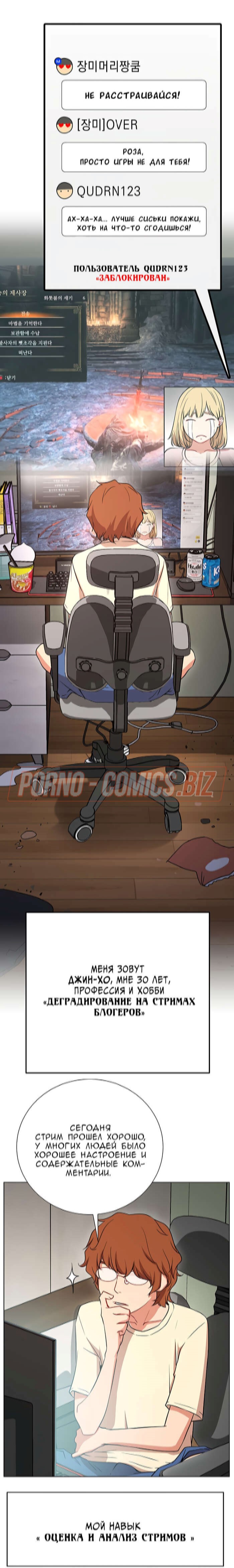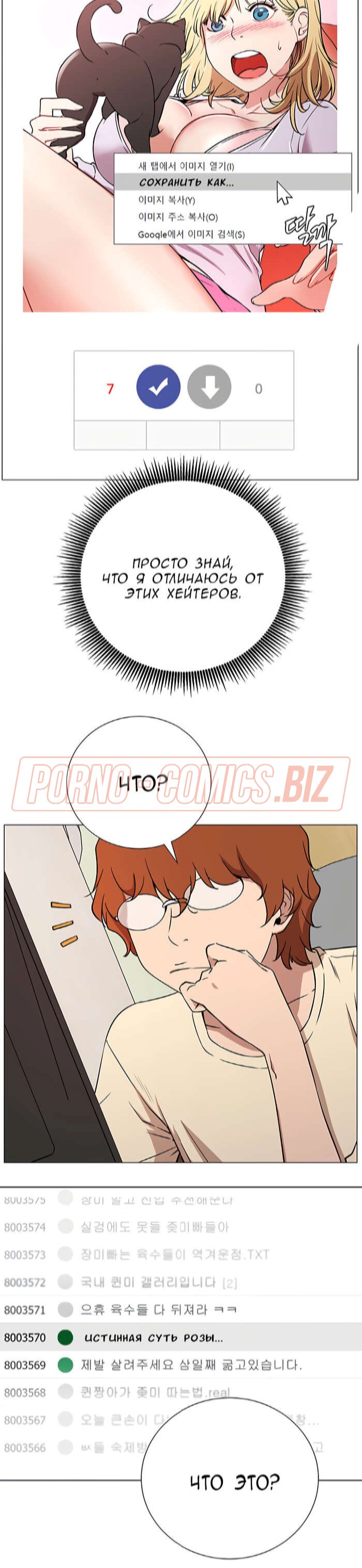 В первой главе возбуждающего порно комикса "В прямом эфире. Ты хочешь на стрим." молоденькая лоли, повернувшись в сторону, чтобы взять на руки своего кота, случайно засветила подписчикам красивую попку. Когда кот стал ее царапать, девушка умудрилась засветить еще и большие сисечки. Если бы она не была такой скромняшной, то смело бы показалась голенькой на стриме для своих фанатов.