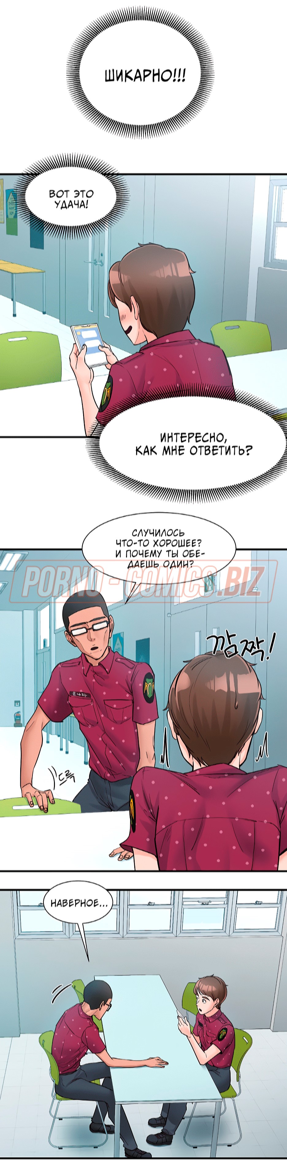 Смотрите порно историю о том, как молоденький охранник, по уши влюбившись в симпатичную секретаршу в мини юбке, начинает к ней подкатывать. Девушка очень злится, когда охранник делает это на глазах у других сотрудников. Она просит его быть по-аккуратнее. Когда их замечает начальница, то начинает кричать во все горло, что разврата и похоти в своей компании она не потерпит.