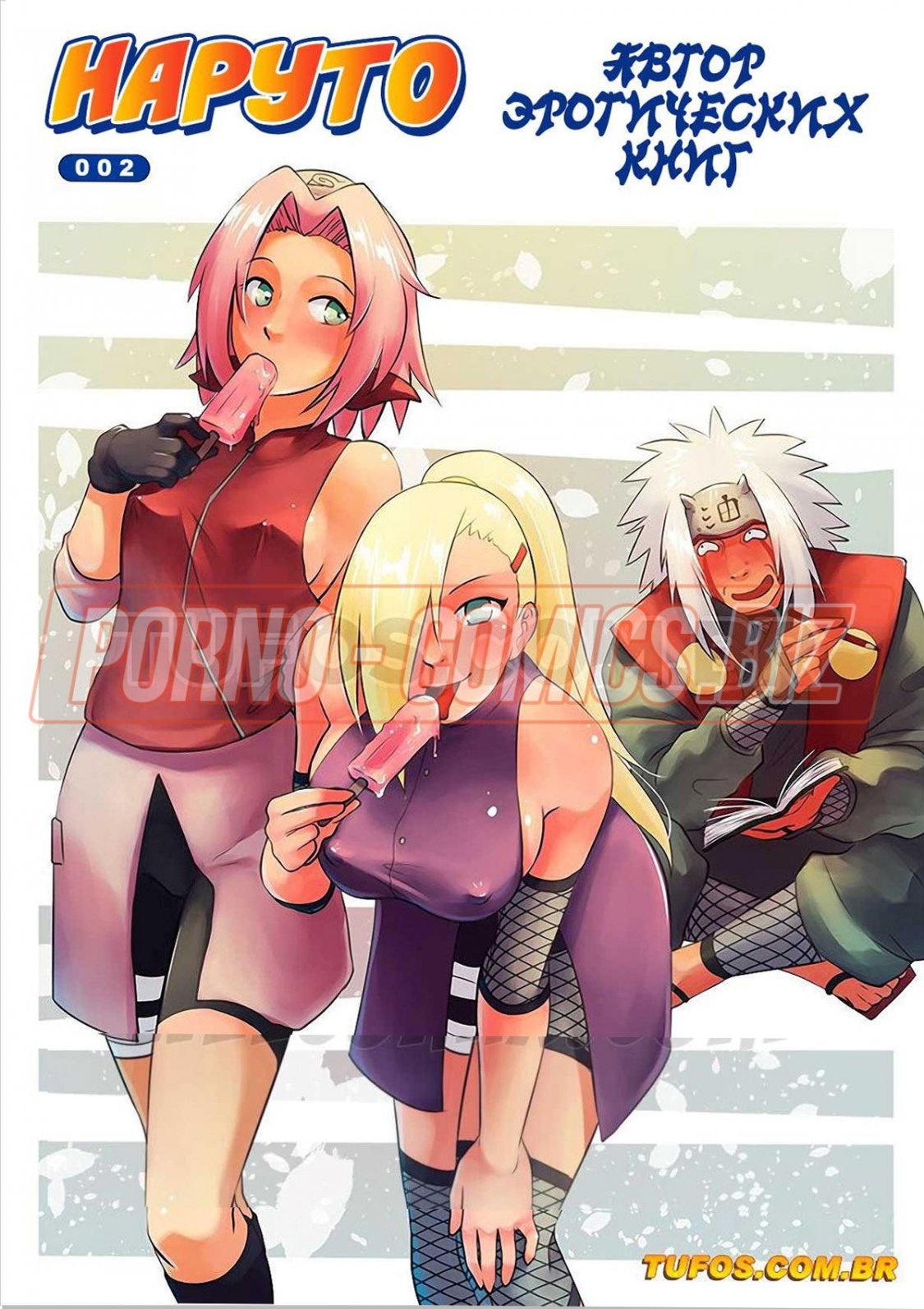 Во второй части комикса "Автор эротических книг" вы познакомитесь с красавчиком Наруто и творческой личностью Джираем. Узнав, что у седовласого развратника закончились эротические идеи, Наруто предлагает ему прогуляться. Скушав по мороженному, мужчины знакомятся с безумно сексуальными телочками. Если устроить с ними групповушку, Джирайя может быть сможет вернуть себе свое вдохновение.
