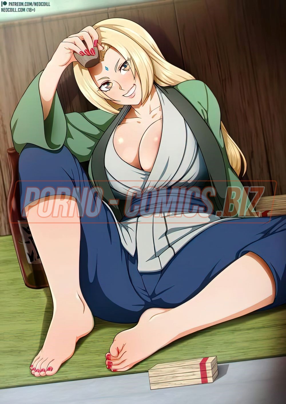 Смотрите аниме комикс с участием грудастой милфы, у которой светлые волосы. Возбудившись, сучка из Наруто готова участвовать в тройничке. Ей нравится резвится с тремя разбойниками сразу. Раздевшись, сиськатая телочка делает трахарям минеты, после чего соглашается на двойное проникновение, взрываясь практически сразу ярким качественным оргазмом.